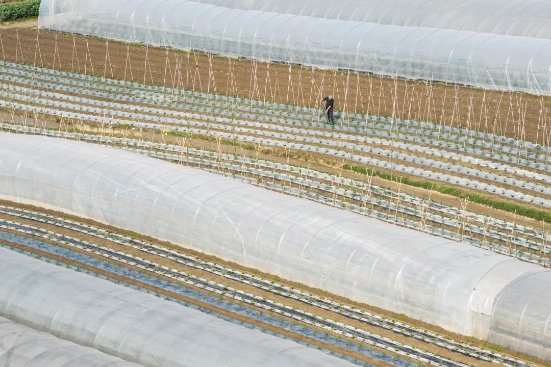 ▲3月9日,潼南区桂林蔬菜基地忙碌的春收春播现场(无人机照片)。记者 张春晓 实习生 李子英 摄
