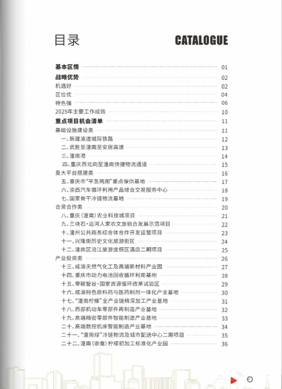 文旅与消费类项目31个,总投资超50亿元,聚焦文旅提质、消费升级 如重庆高速集团拟引资提升“中国高速第一自驾营地”冷水自驾营地,创建为国家4A级景区,丰富文旅产品供给。重庆文旅集团拟引资对乐和乐都主题公园、统景温泉等进行提档升级,助力巴蜀文化旅游走廊建设。