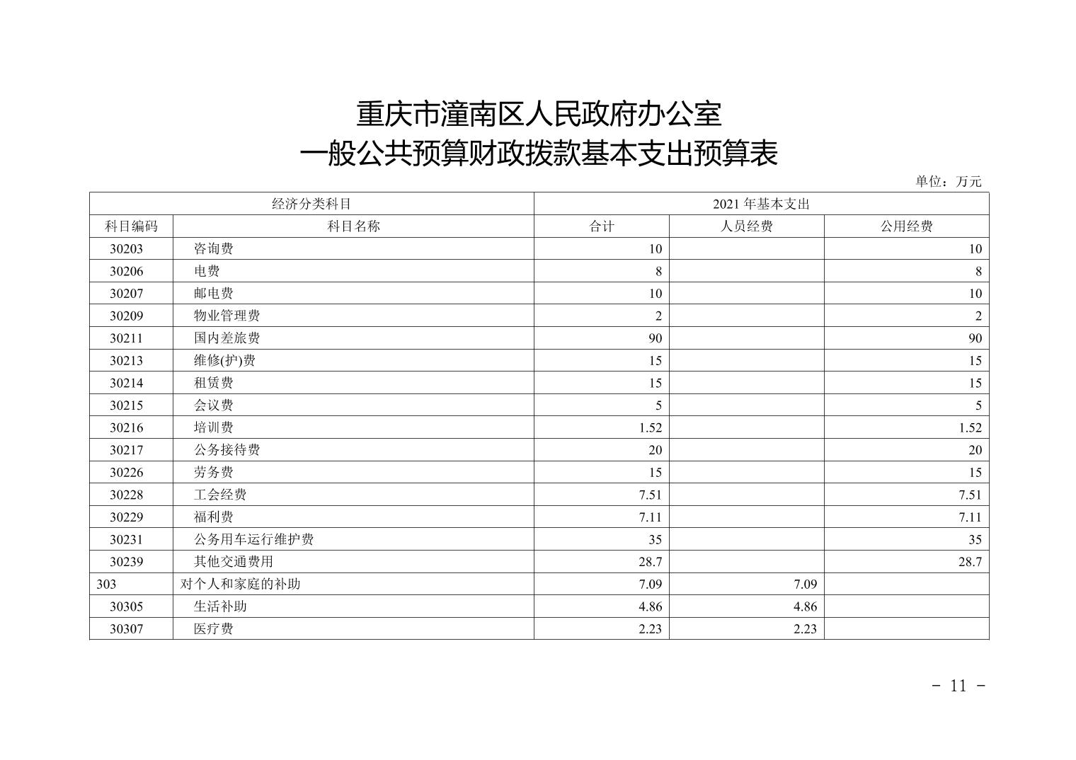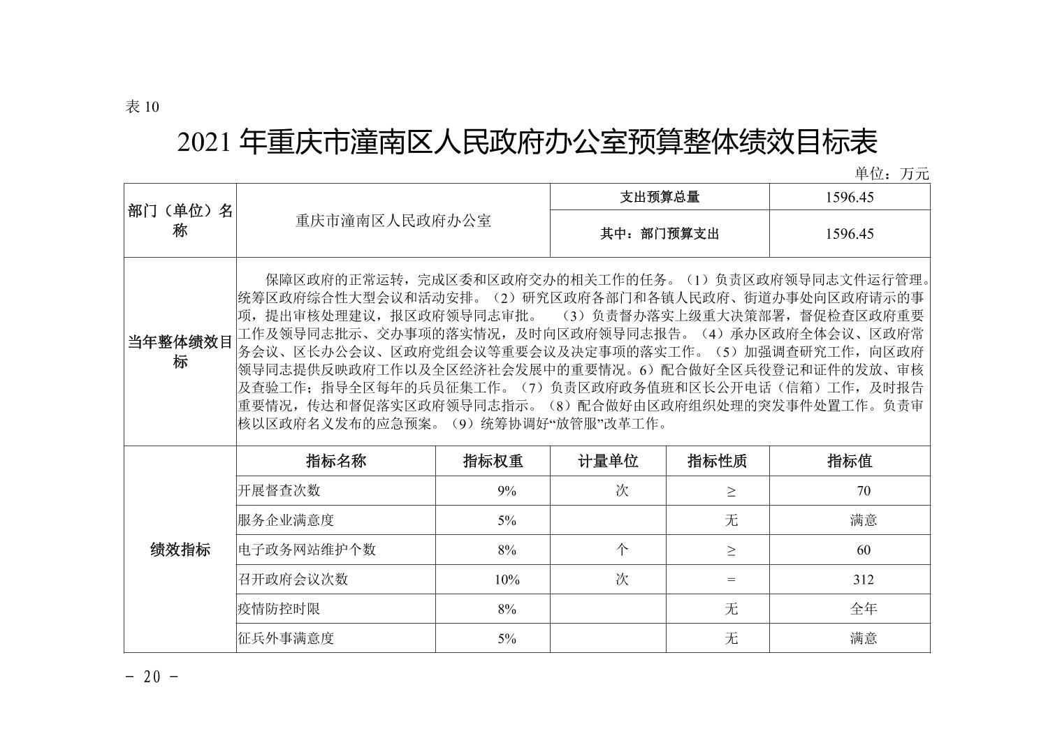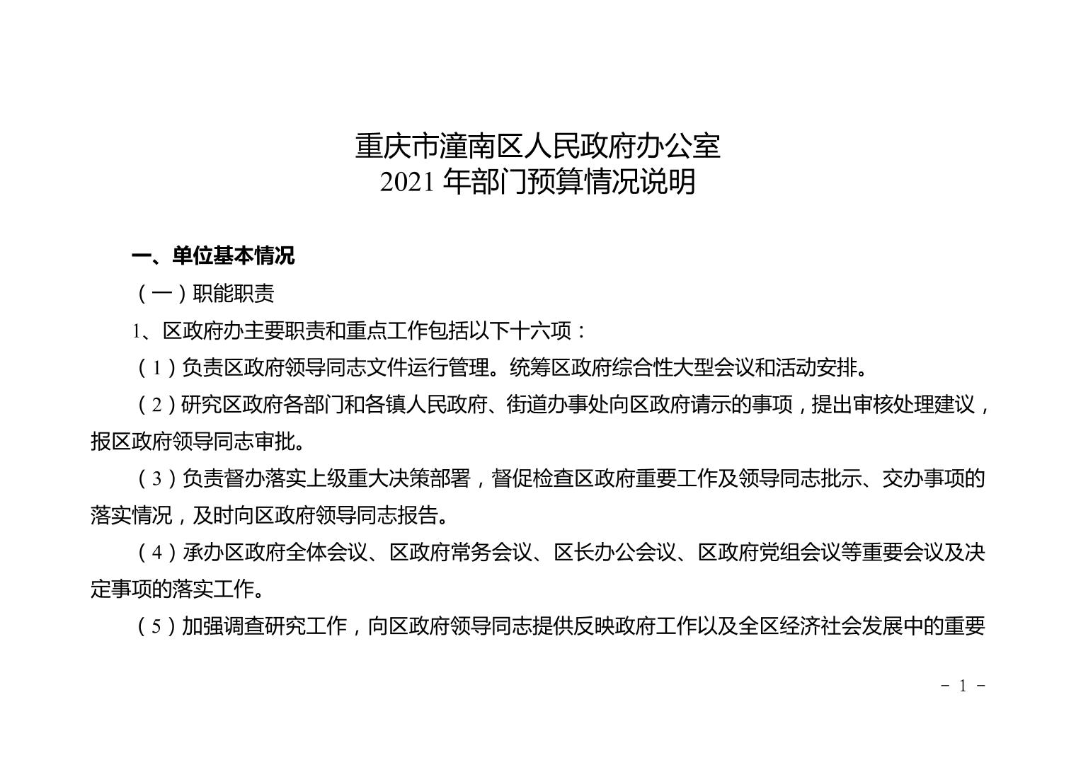 重庆市潼南区人民政府办公室2021年部门预算公开