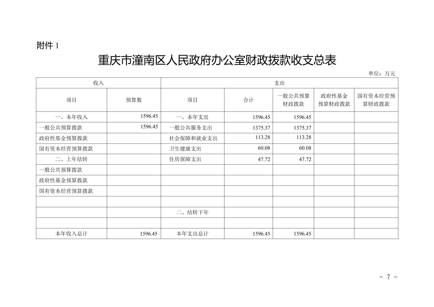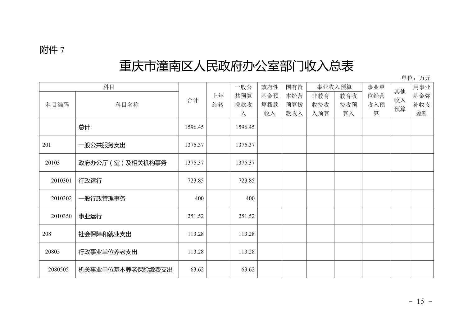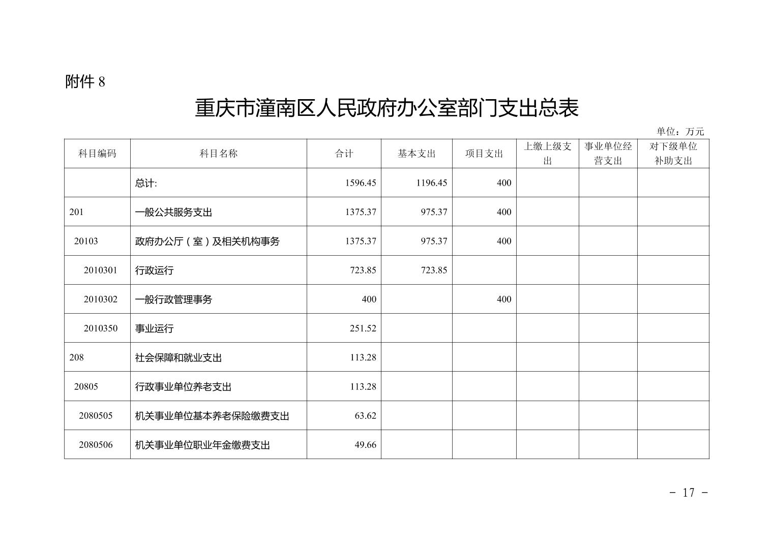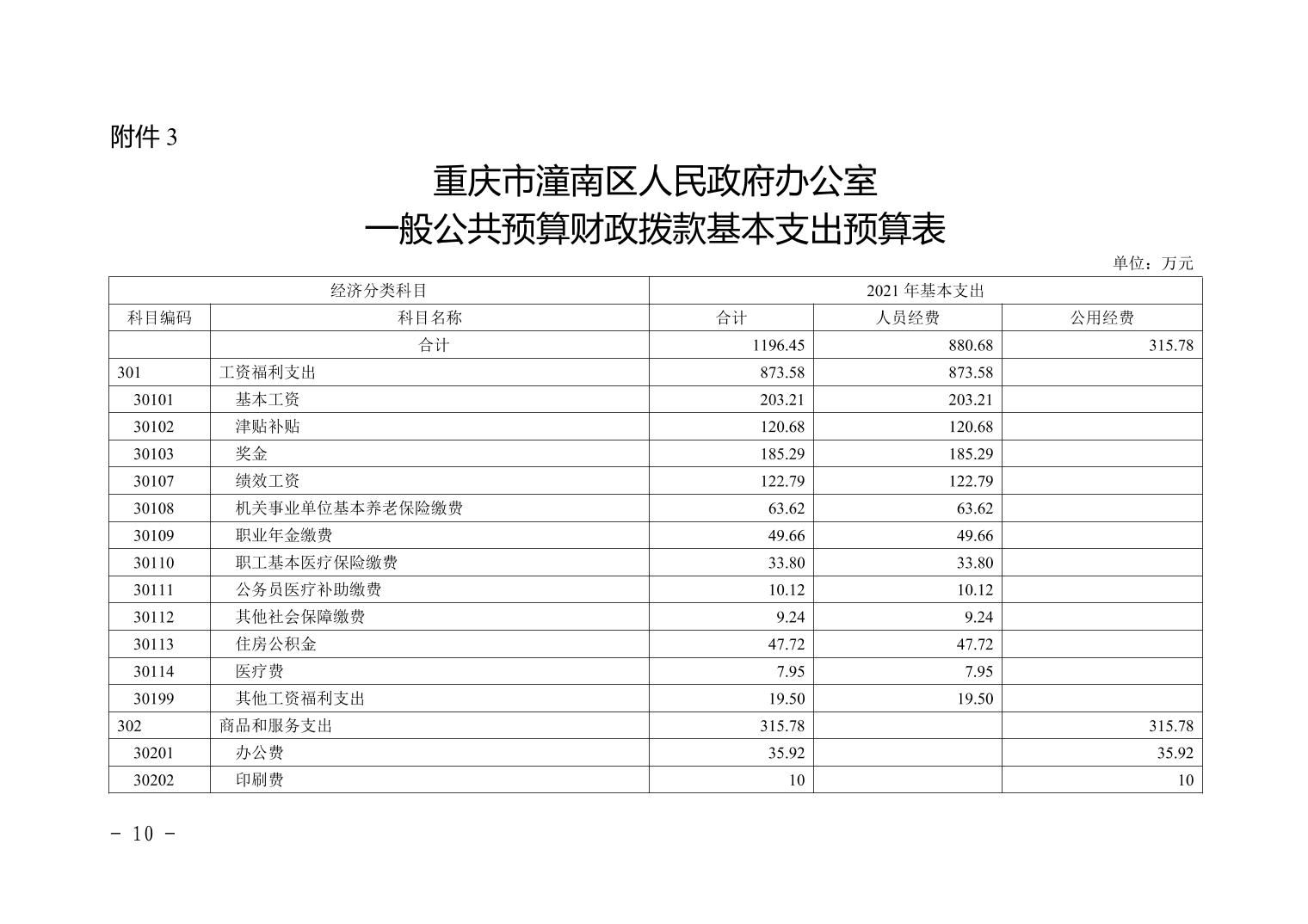 重庆市潼南区人民政府办公室2021年部门预算公开