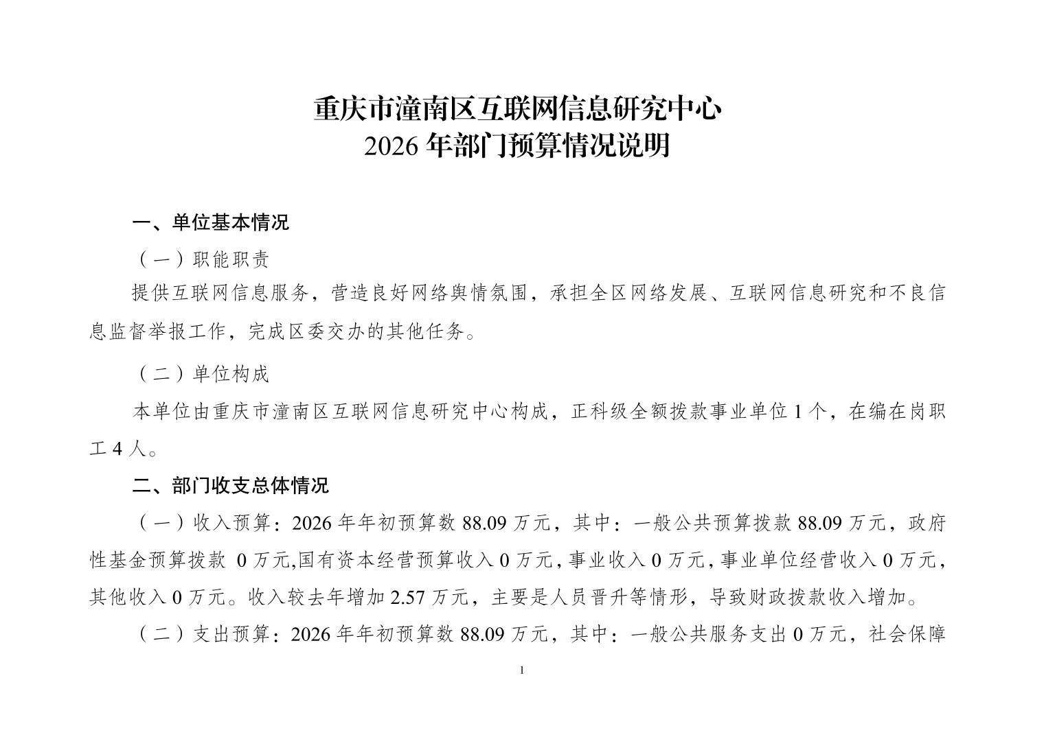 重庆市潼南区互联网信息研究中心2026年度部门预算公开