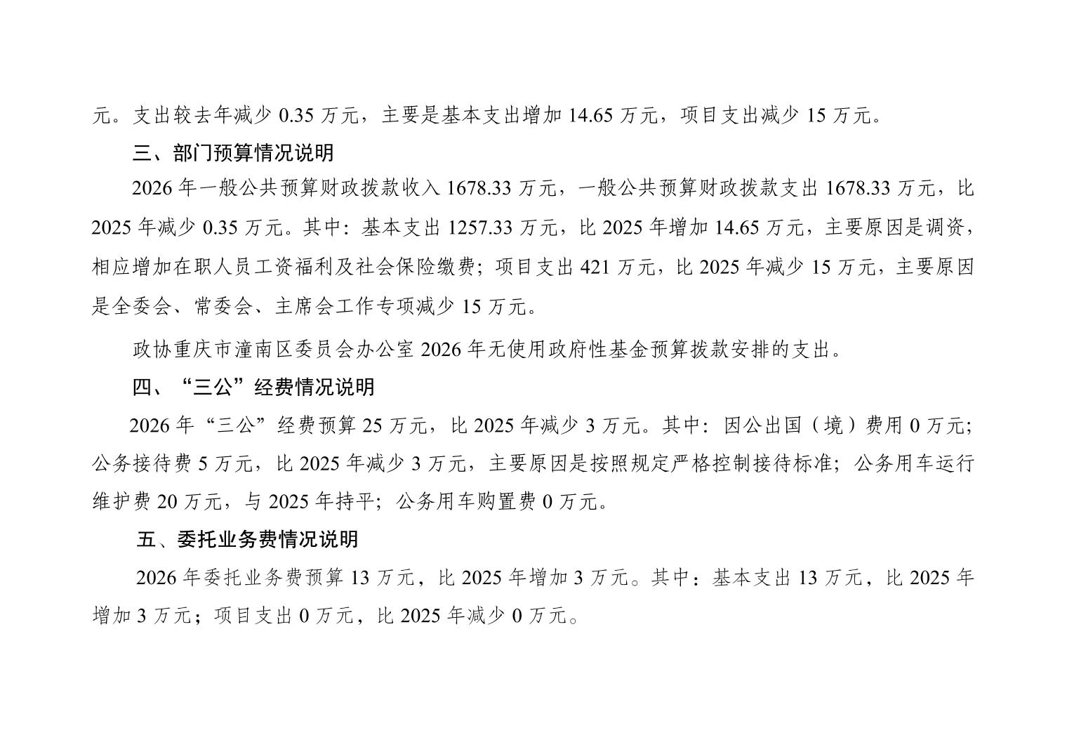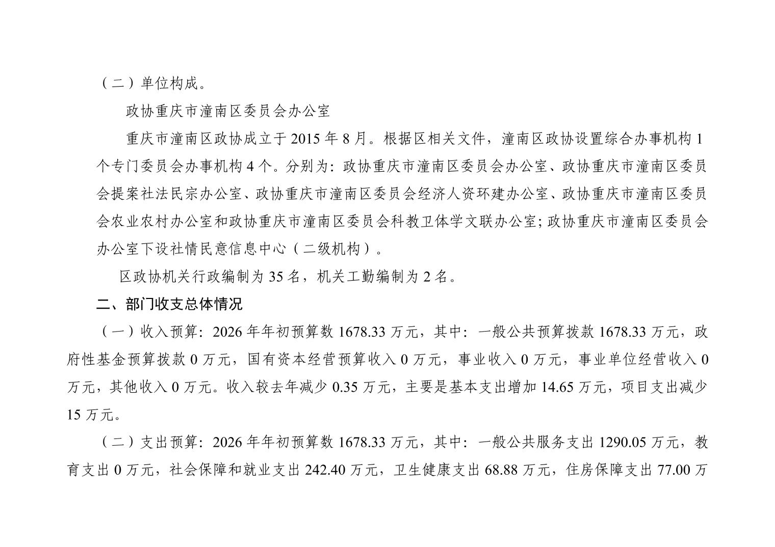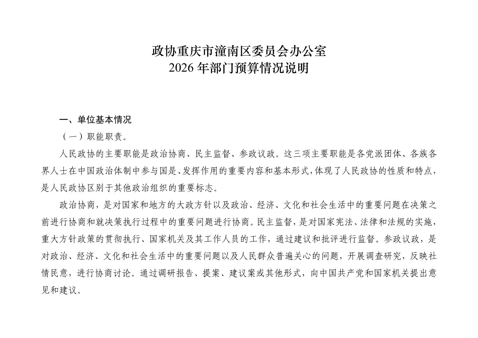 政协重庆市潼南区委员会办公室2026年部门预算公开(政协办本级)