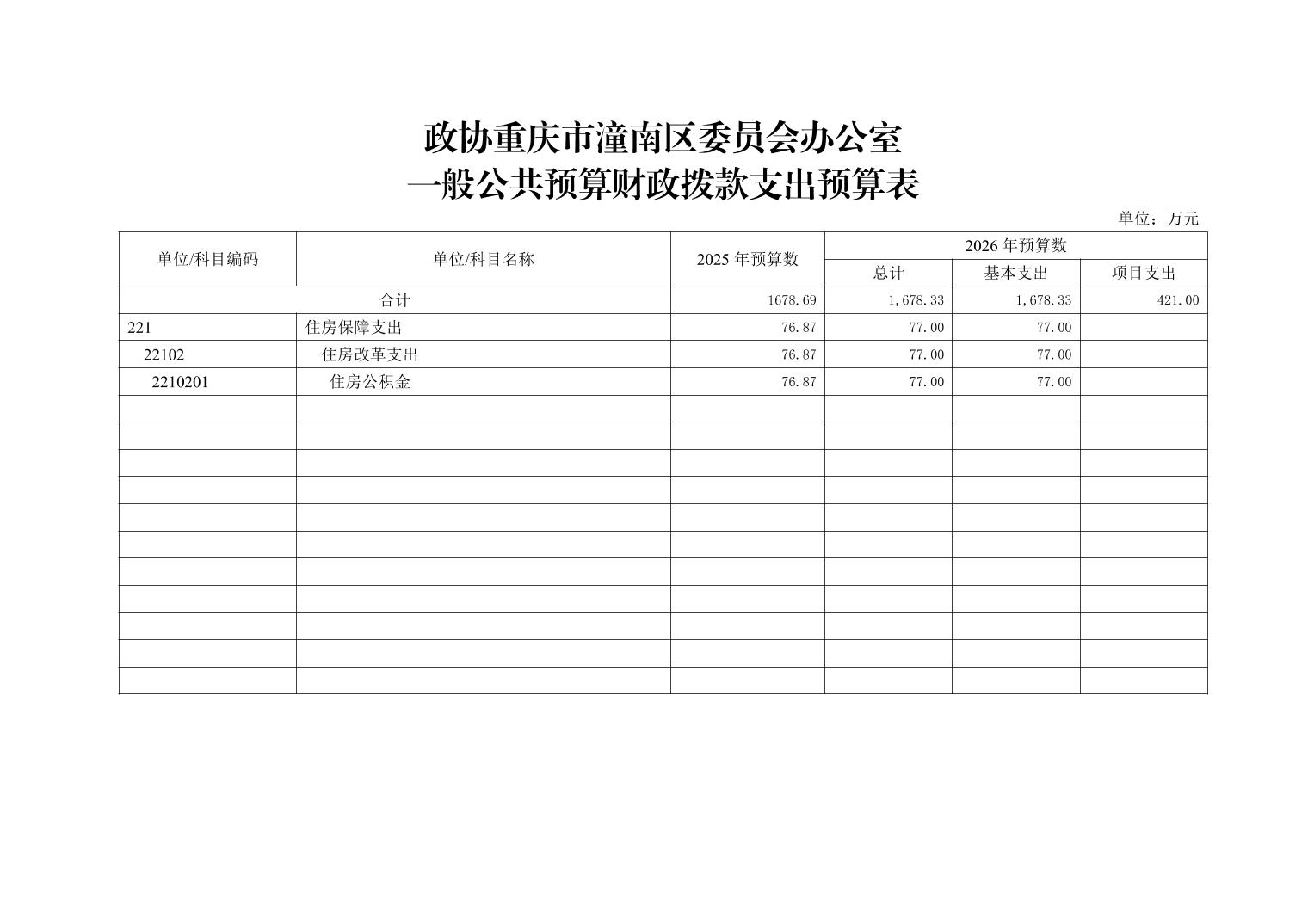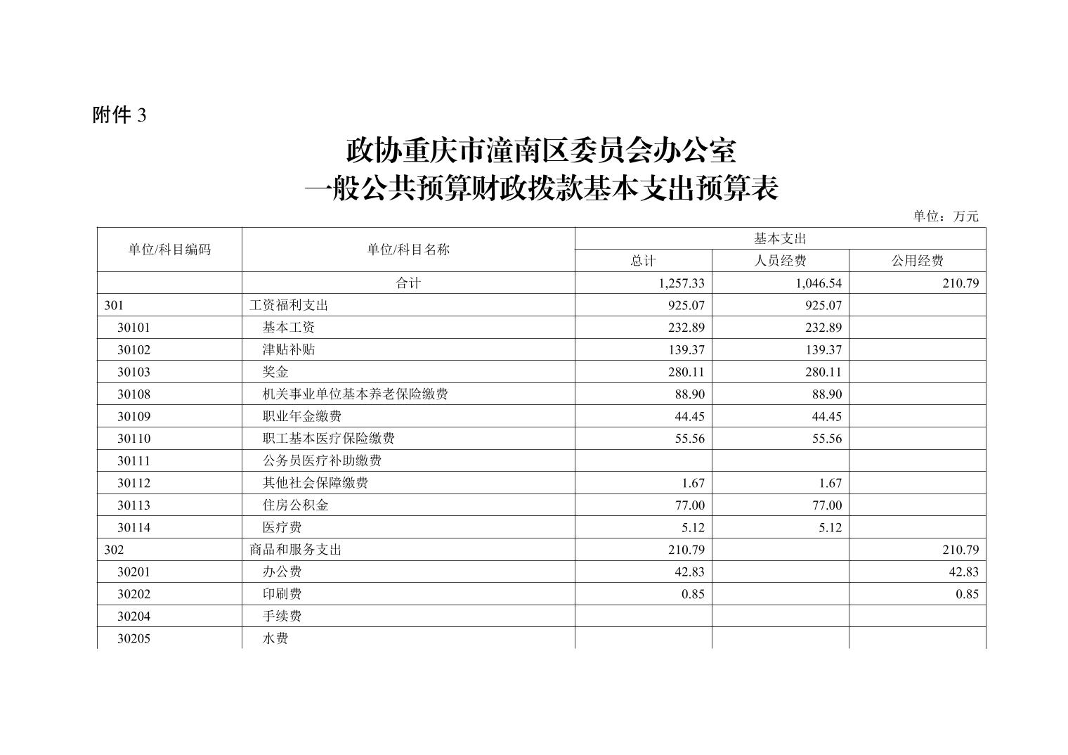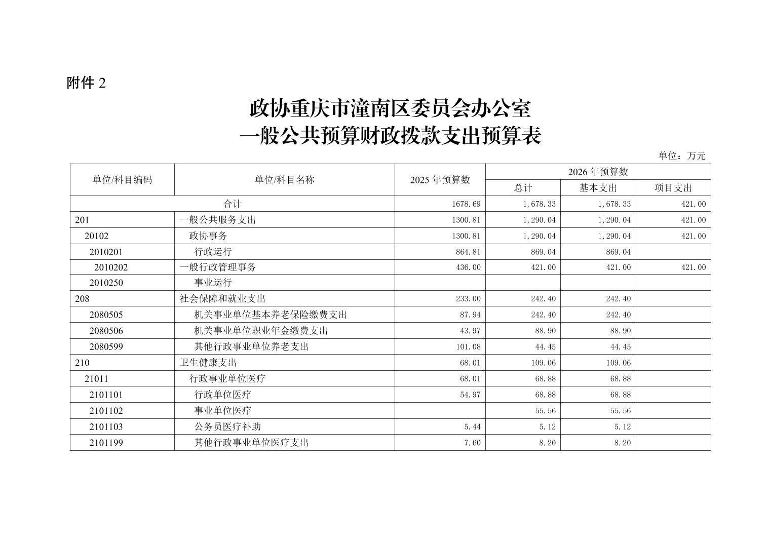 政协重庆市潼南区委员会办公室2026年部门预算公开(政协办本级)