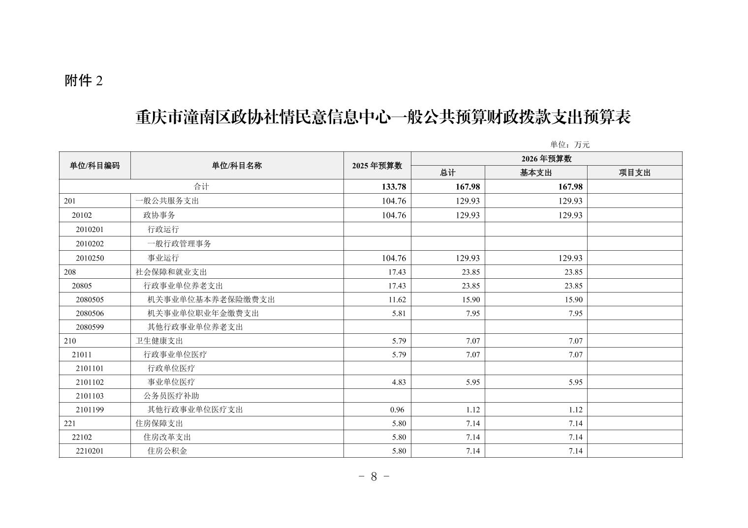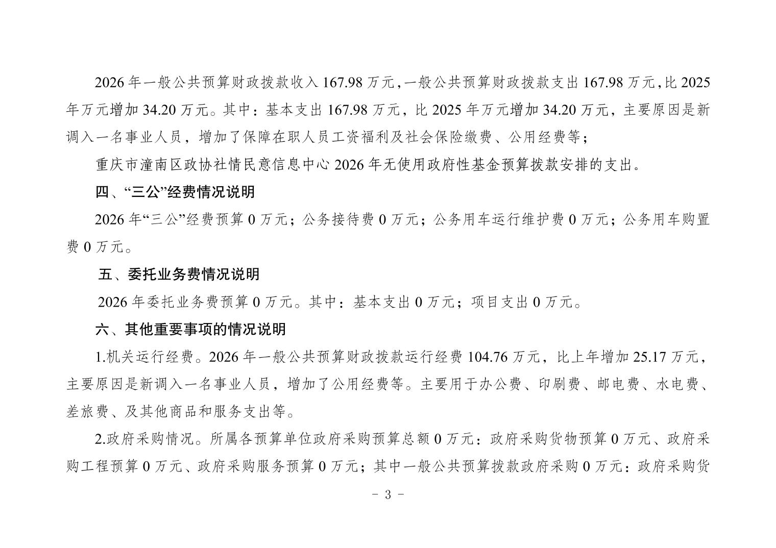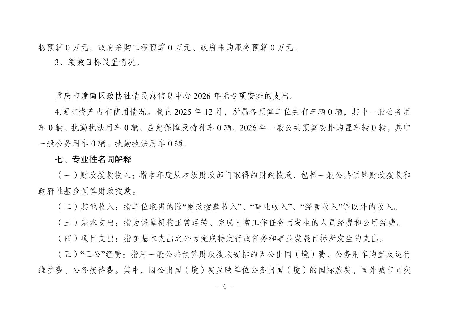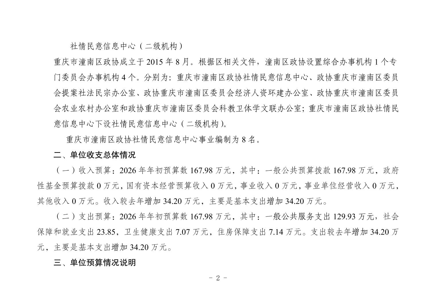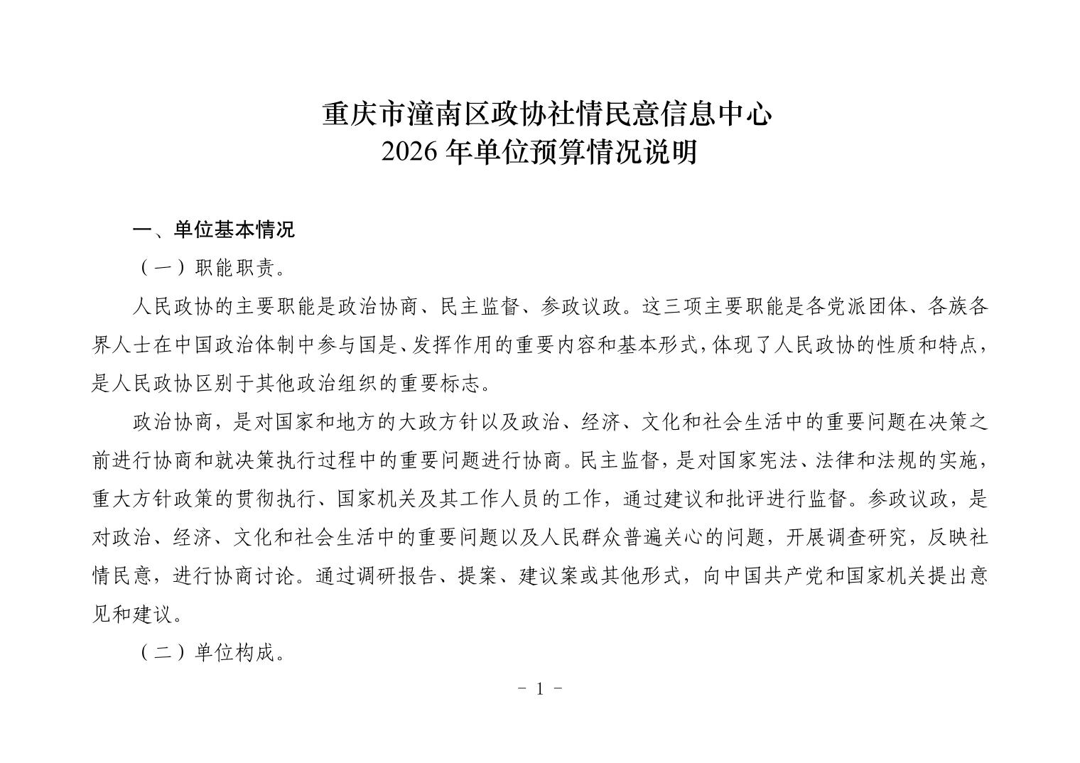 重庆市潼南区政协社情民意信息中心2026年部门预算公开(社情民意中心)
