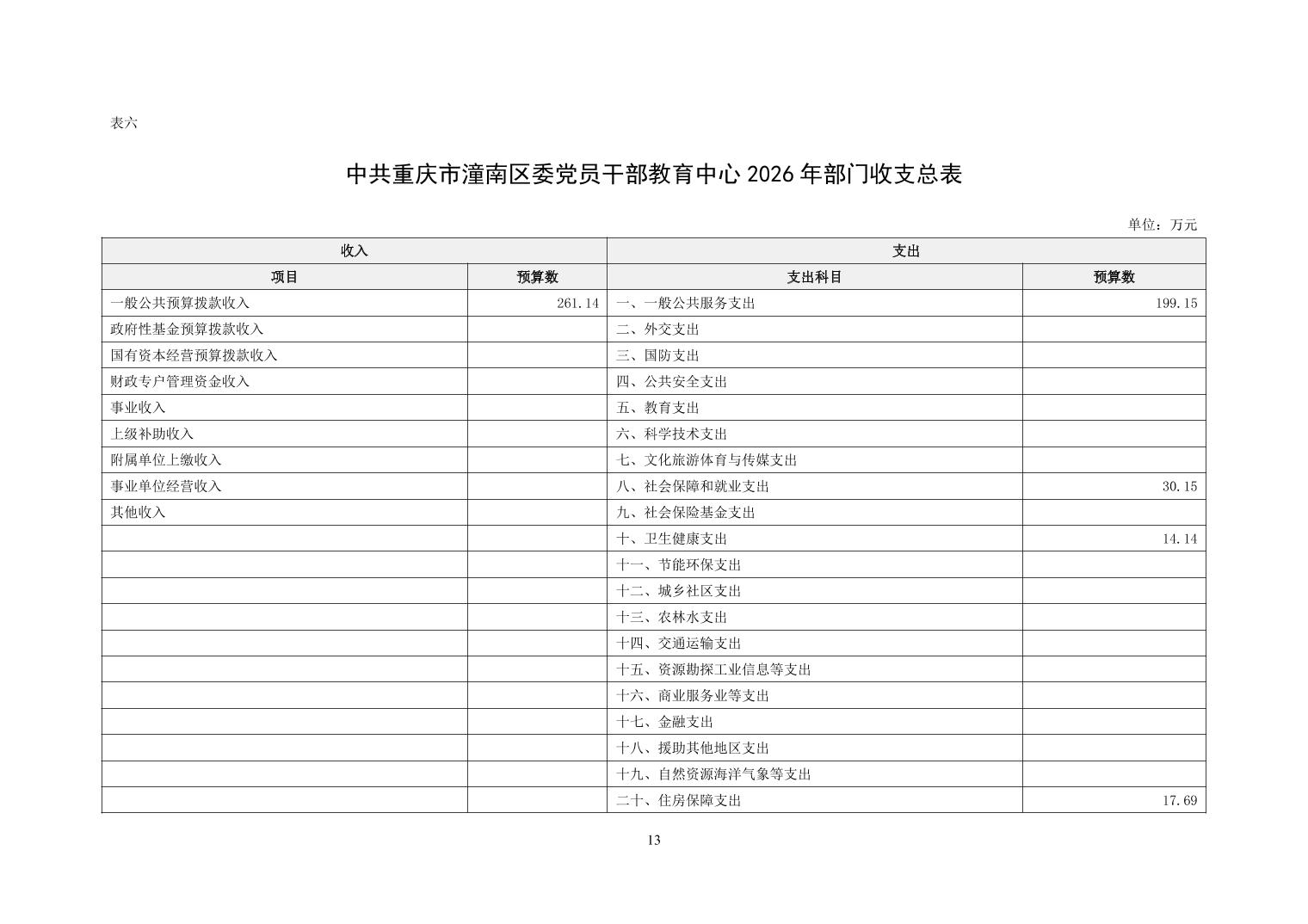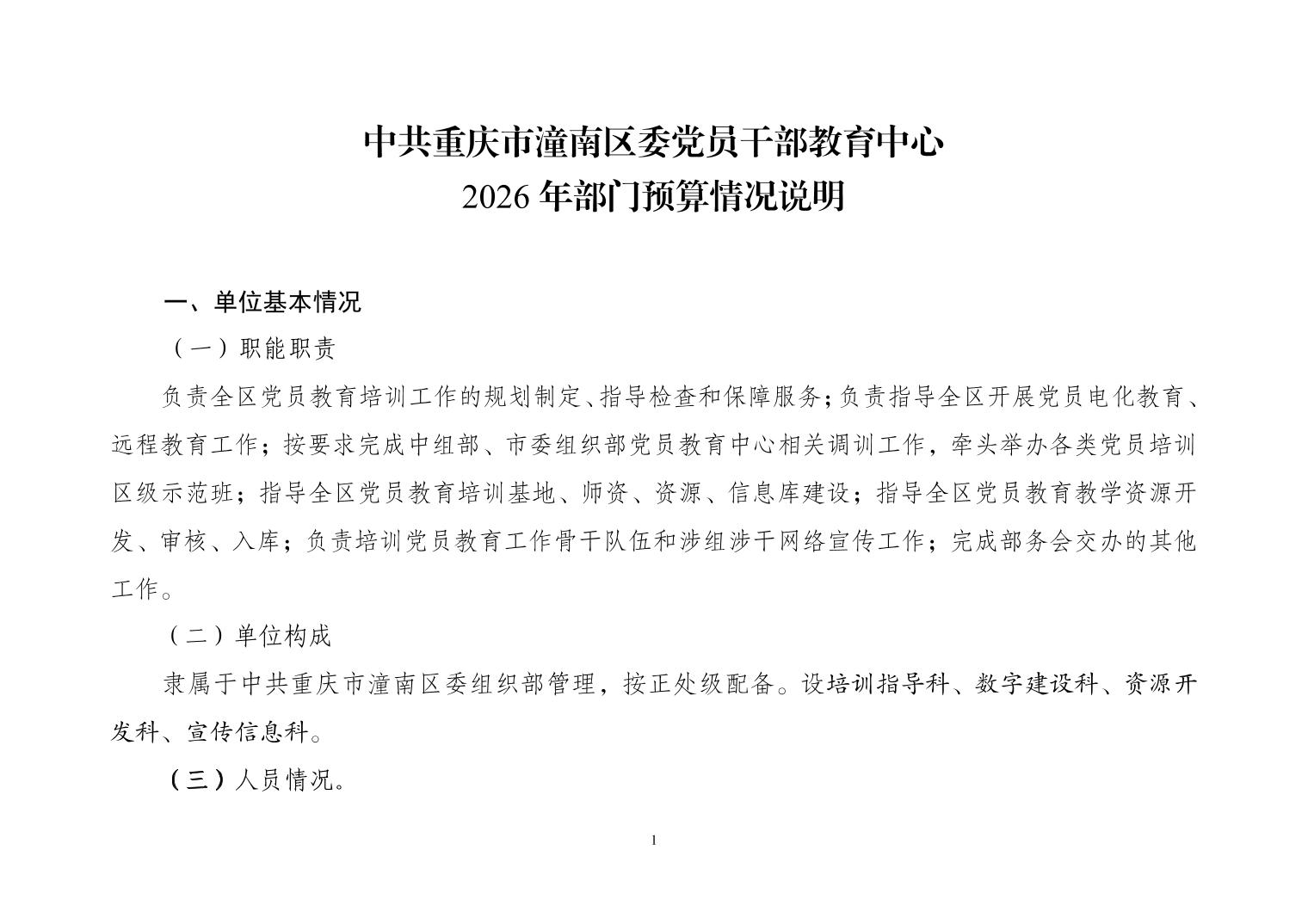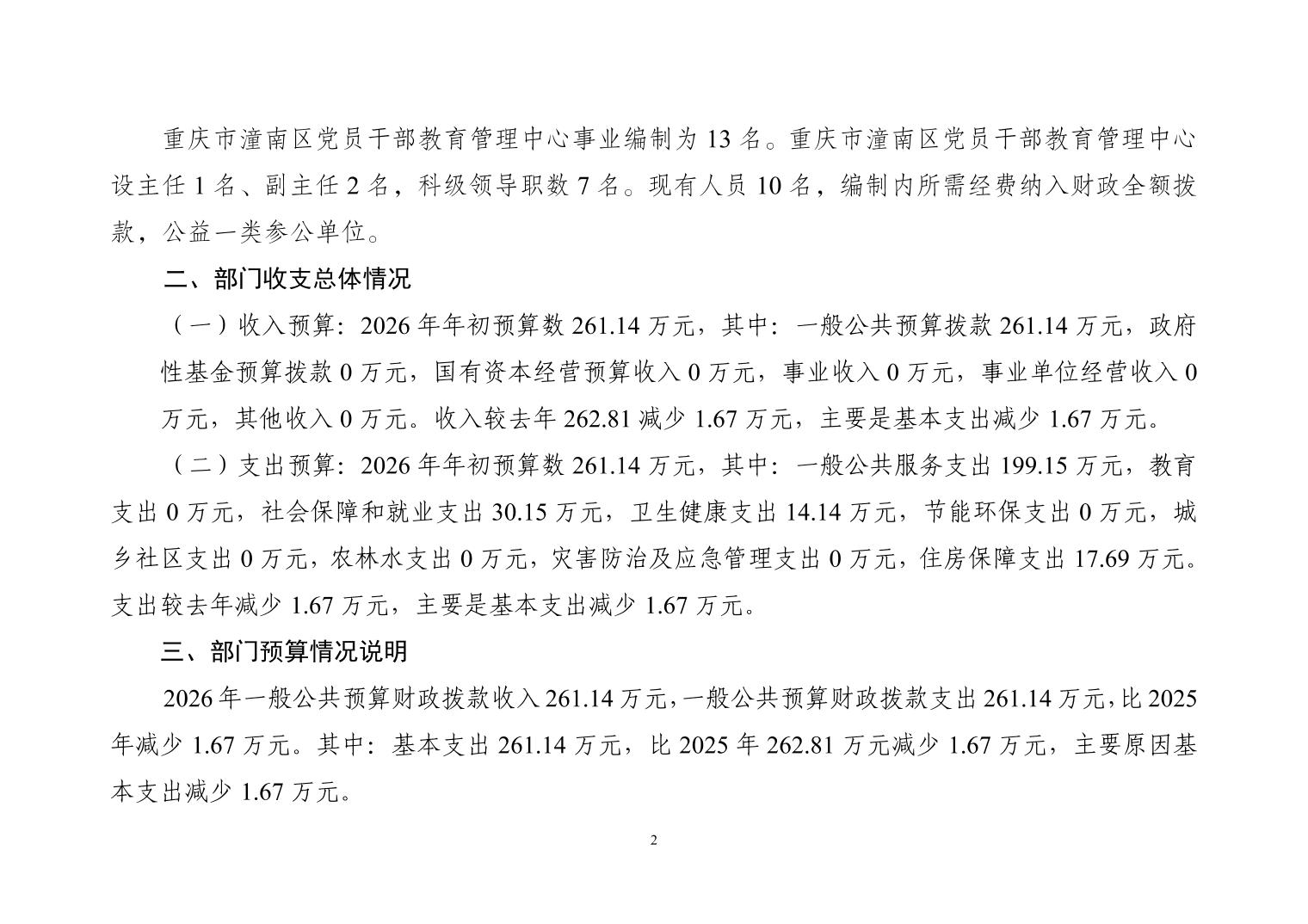 中共重庆市潼南区党员教育管理中心2026年部门预算公开