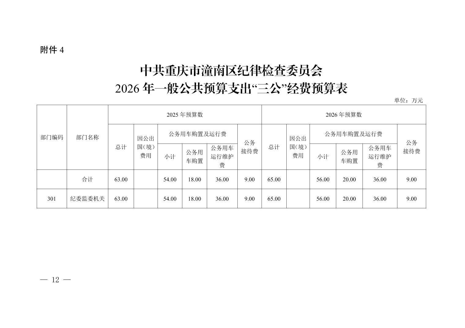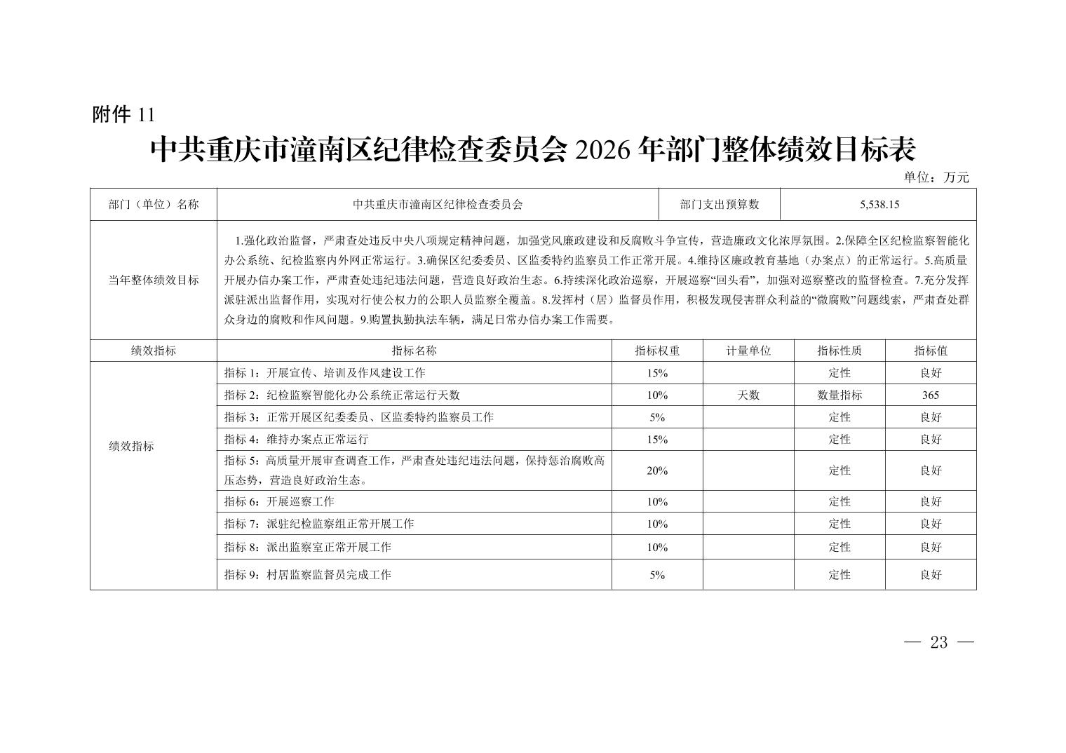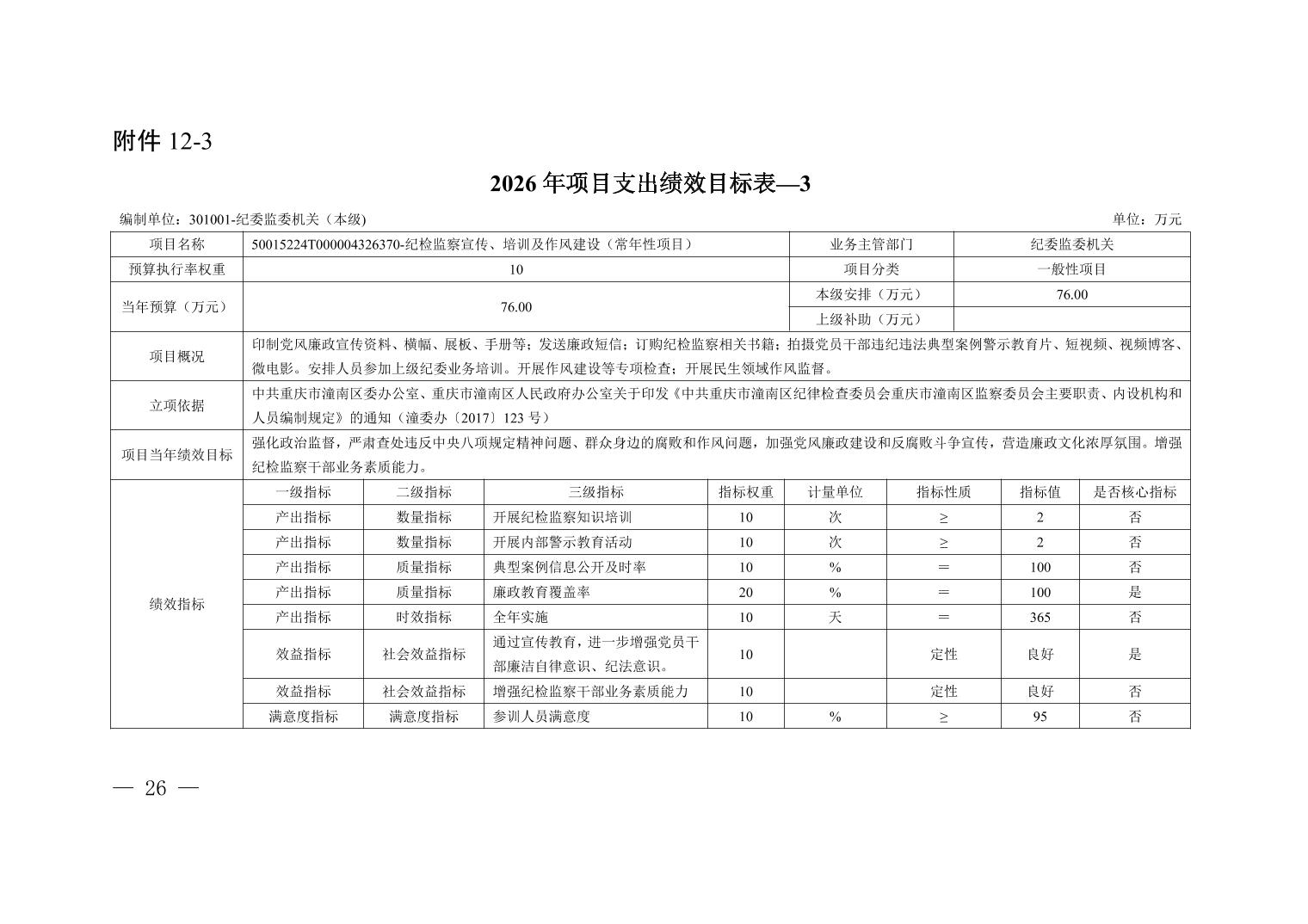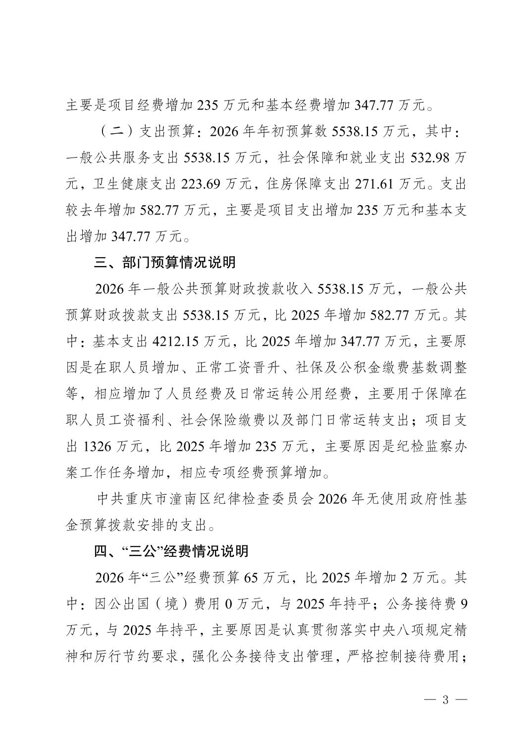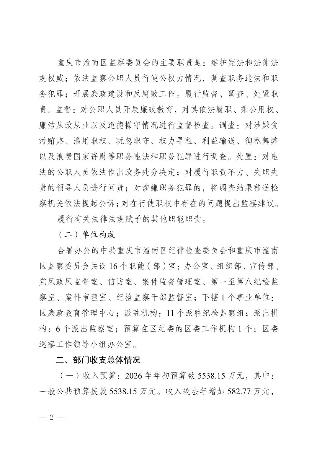 中共重庆市潼南区纪律检查委员会2026年部门预算公开
