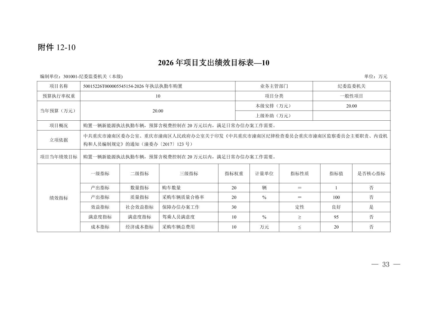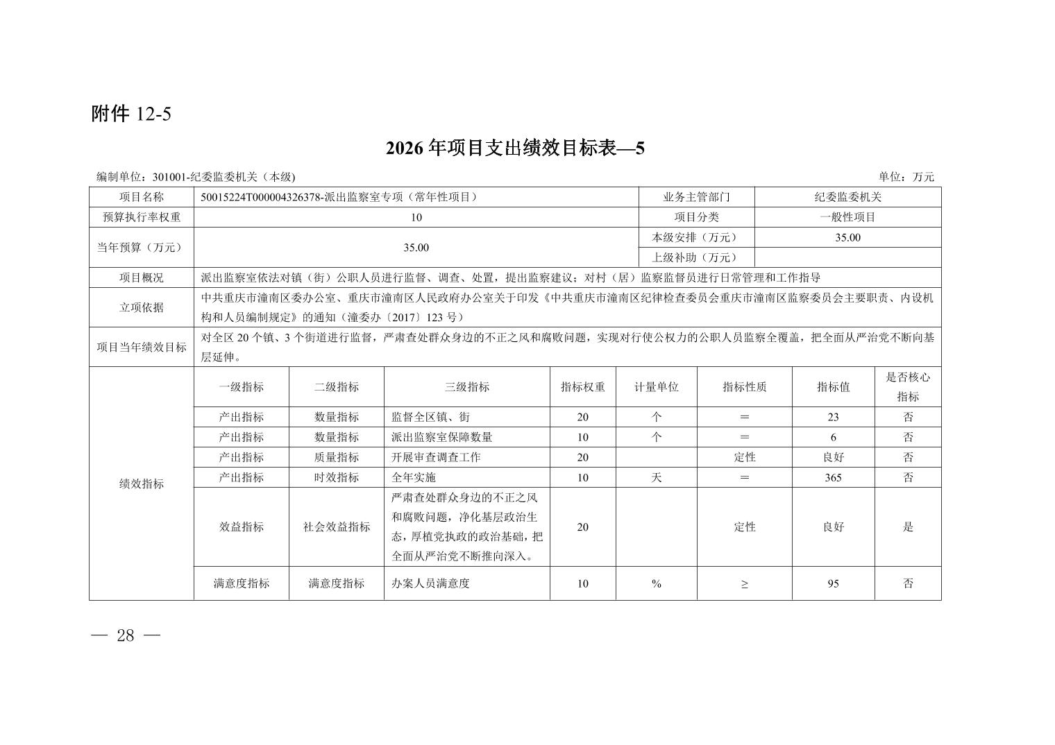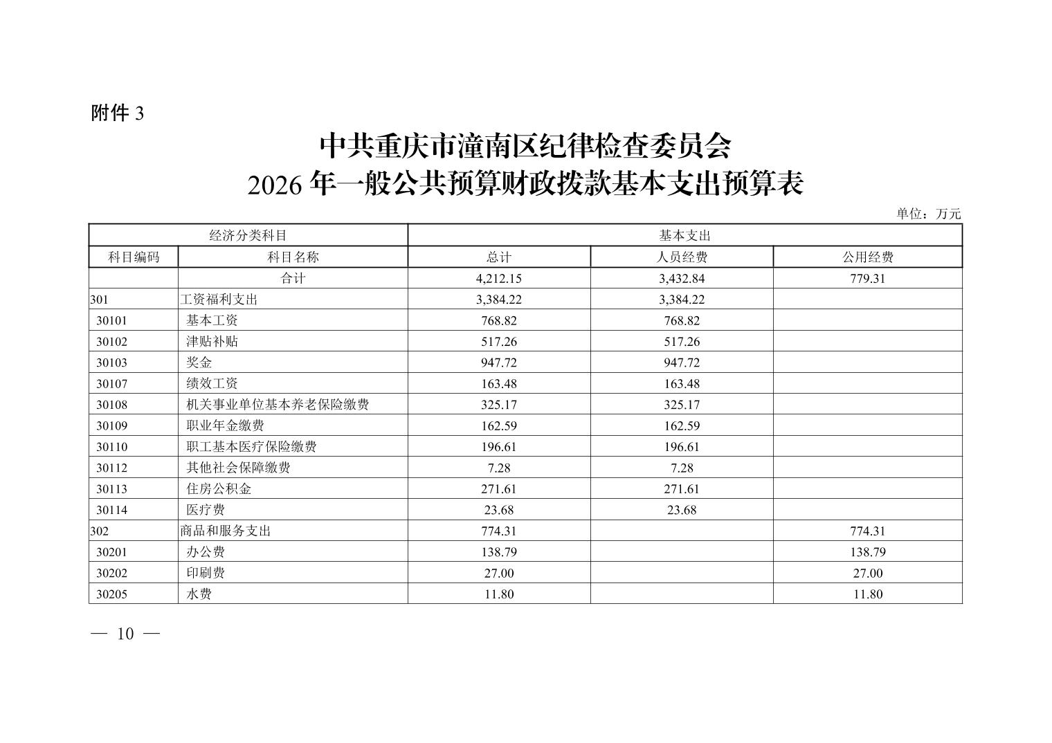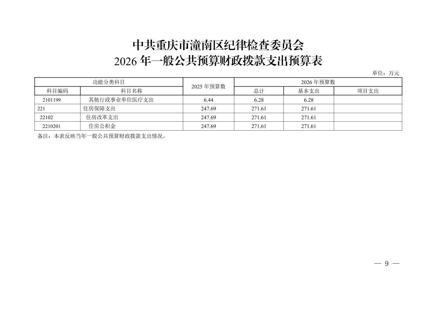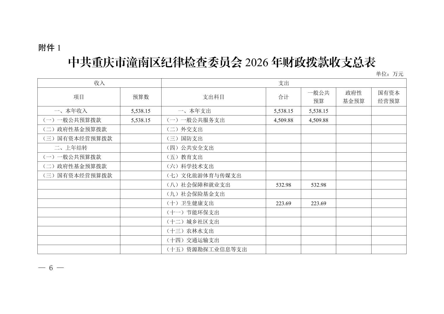 中共重庆市潼南区纪律检查委员会2026年部门预算公开