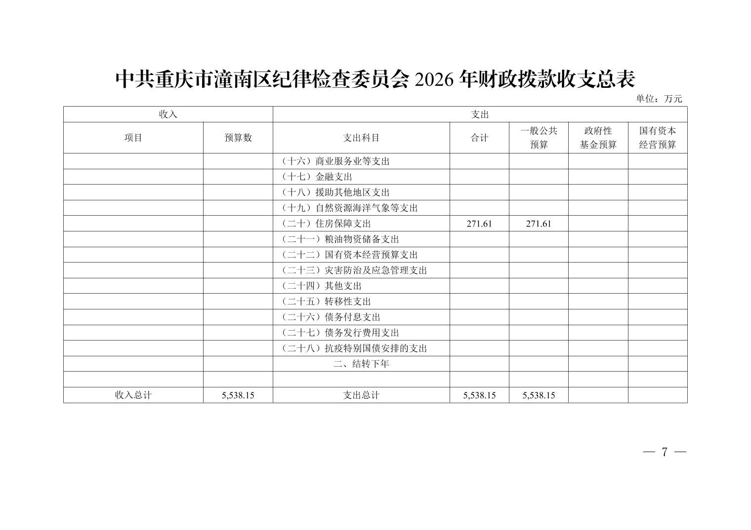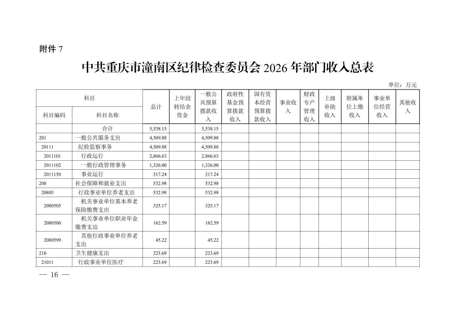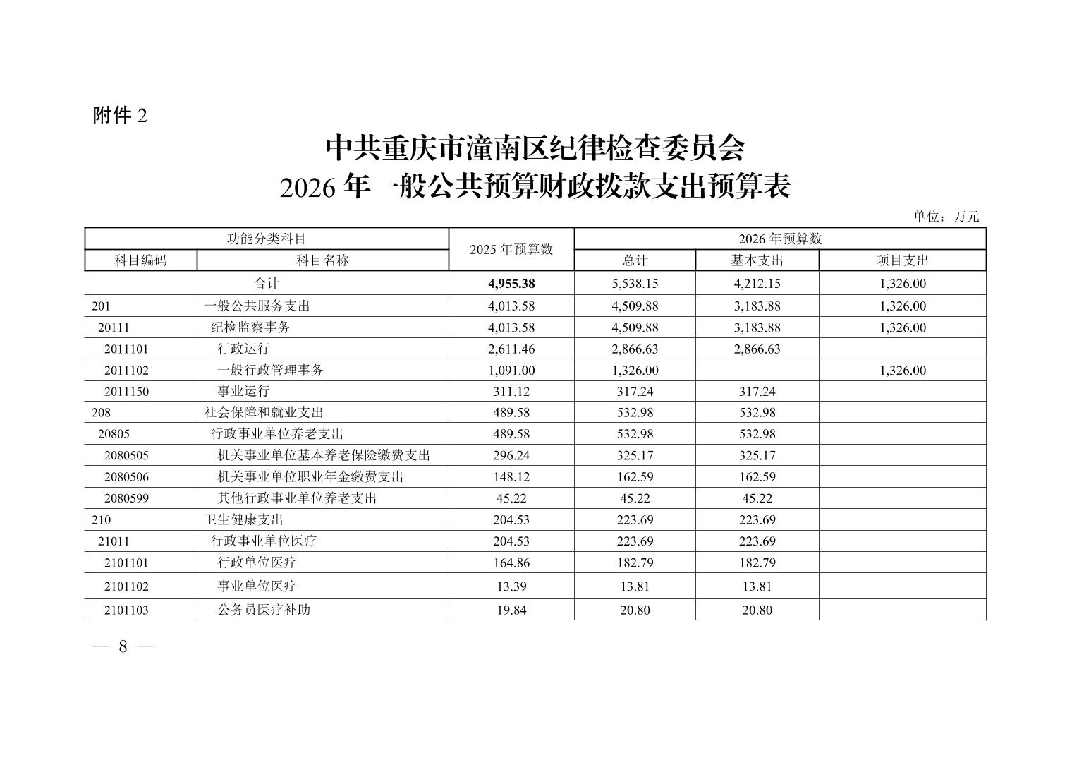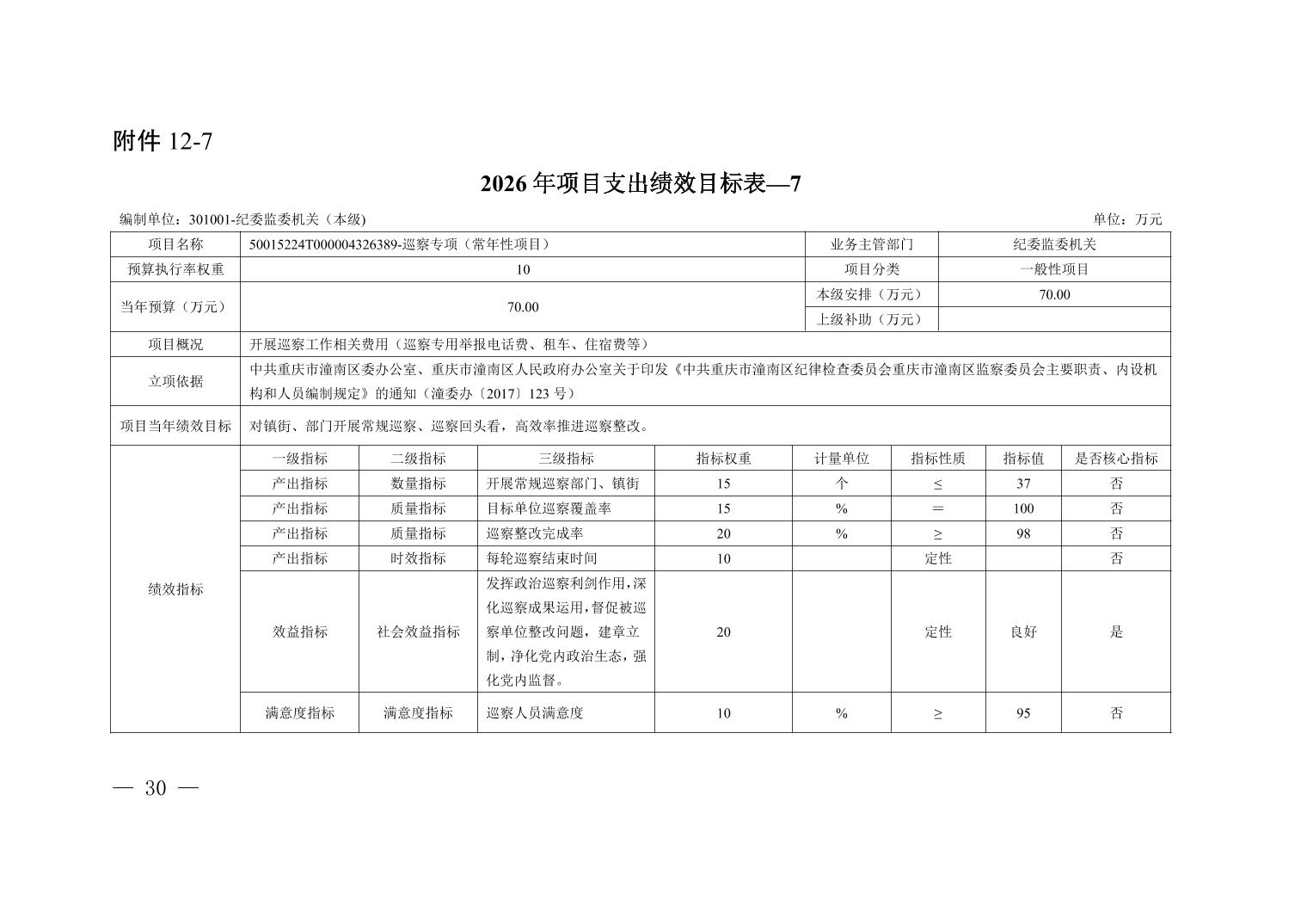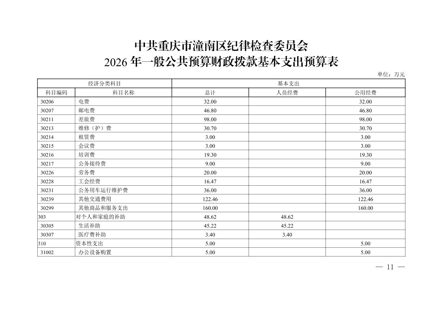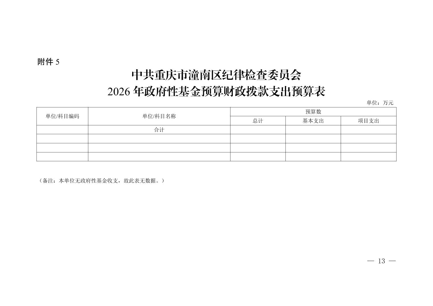 中共重庆市潼南区纪律检查委员会2026年部门预算公开