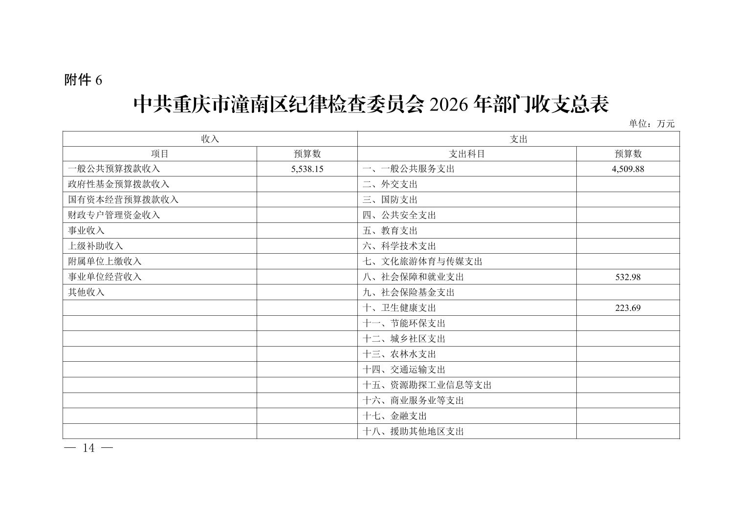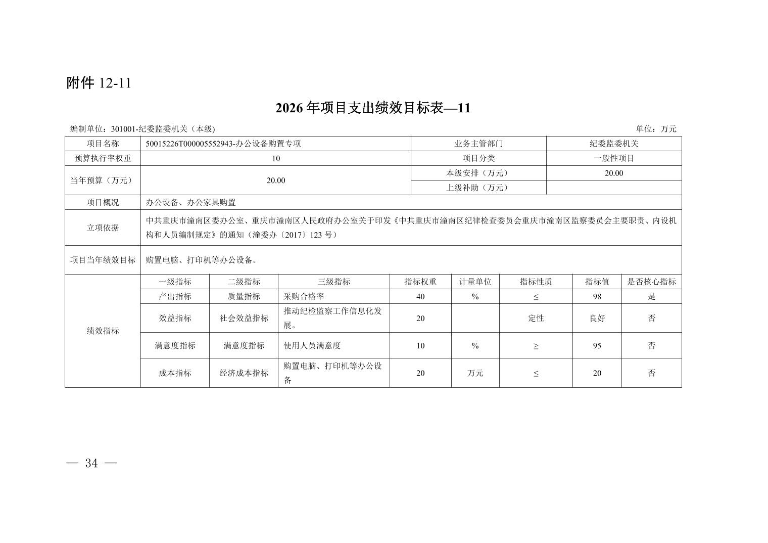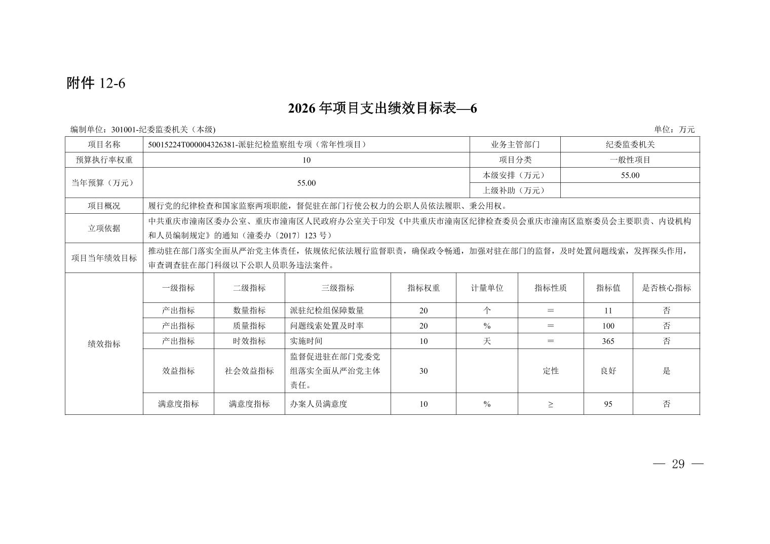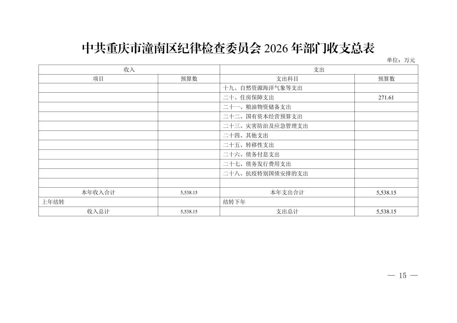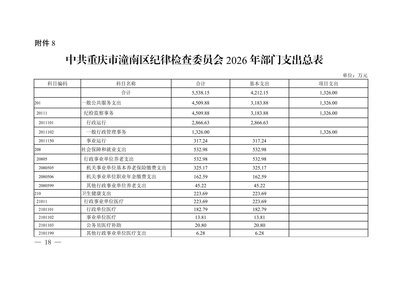 中共重庆市潼南区纪律检查委员会2026年部门预算公开