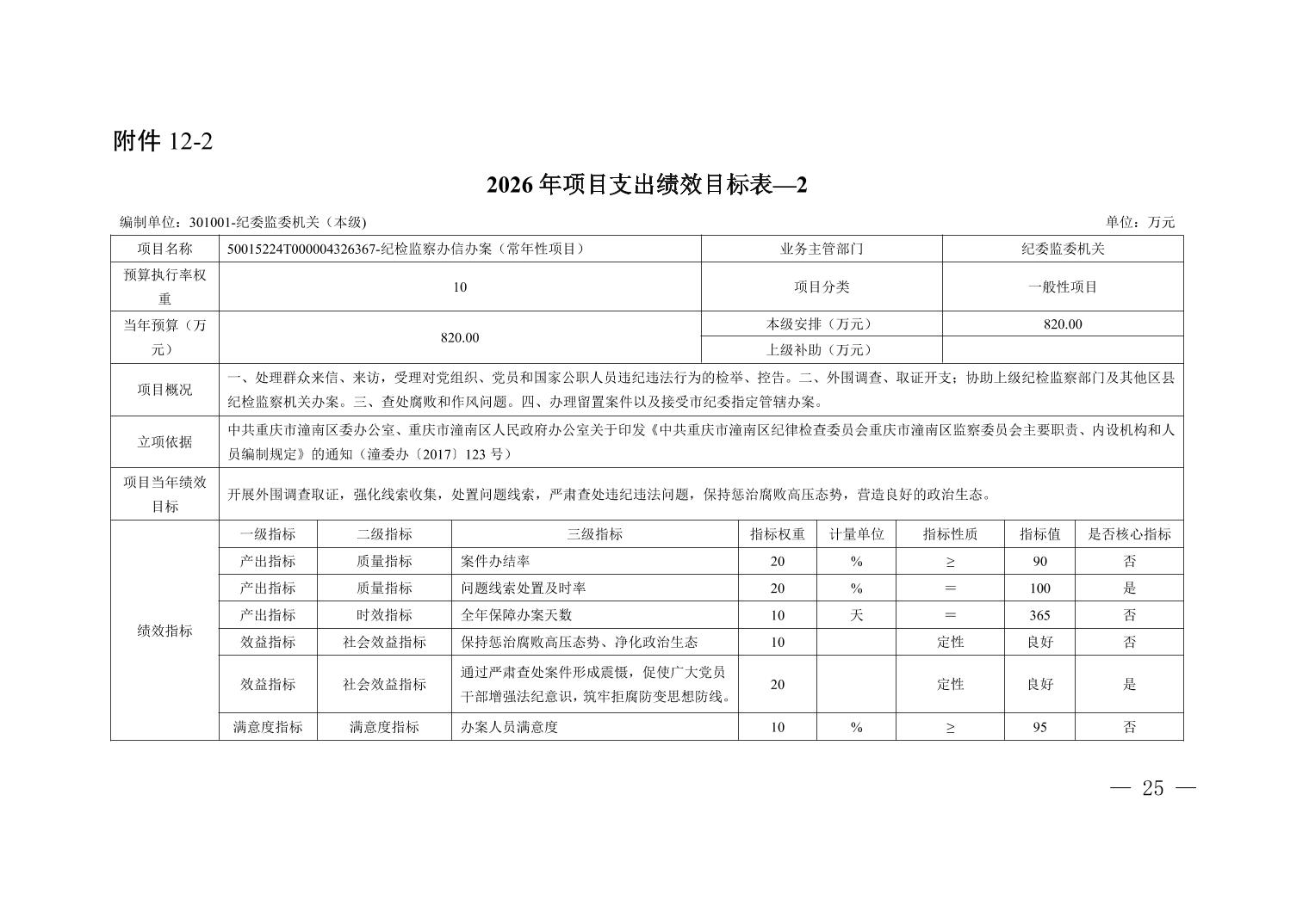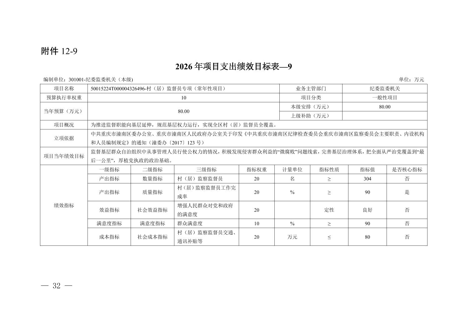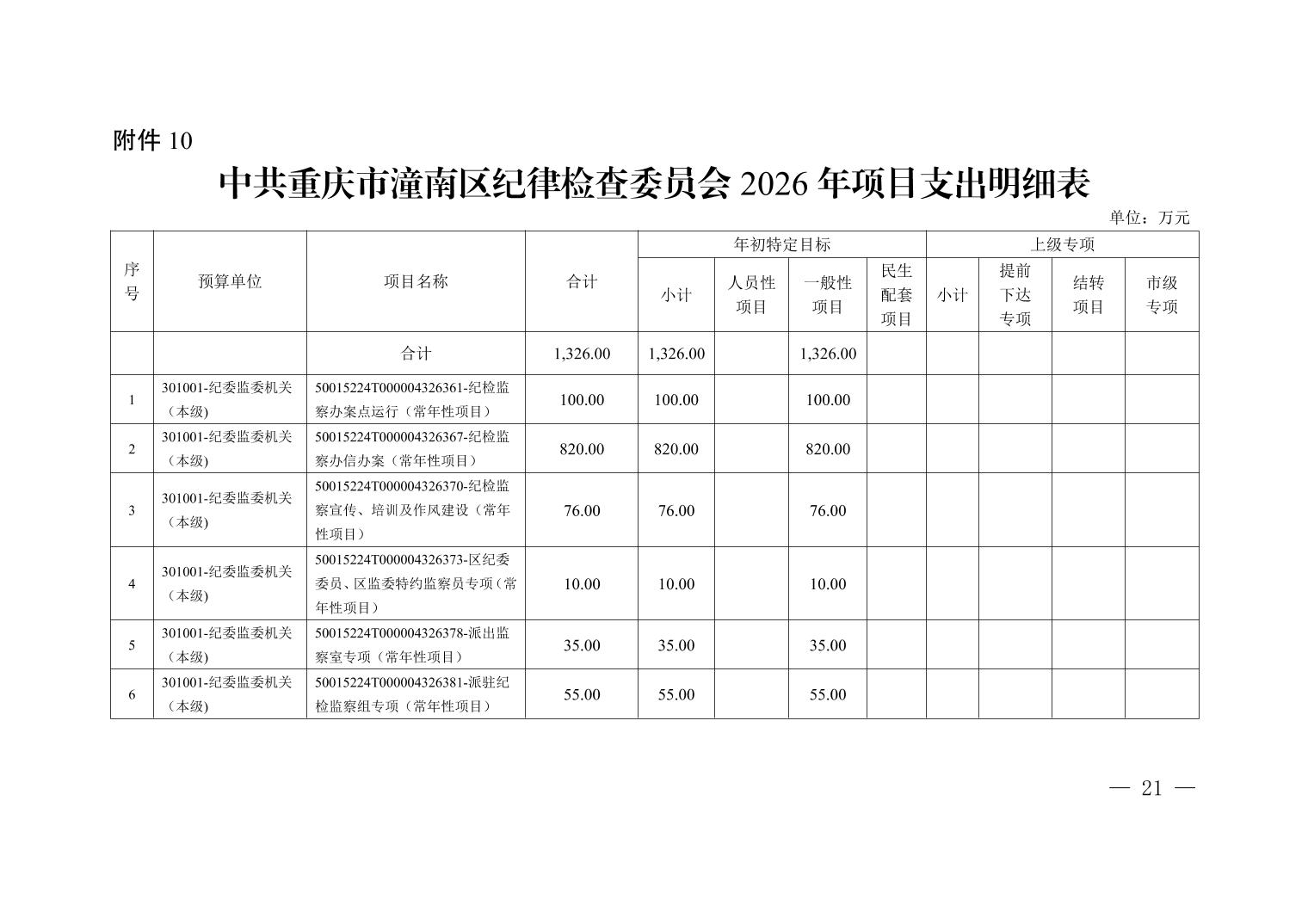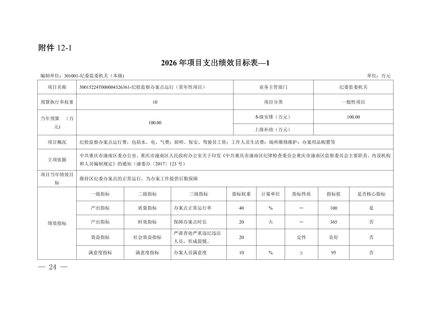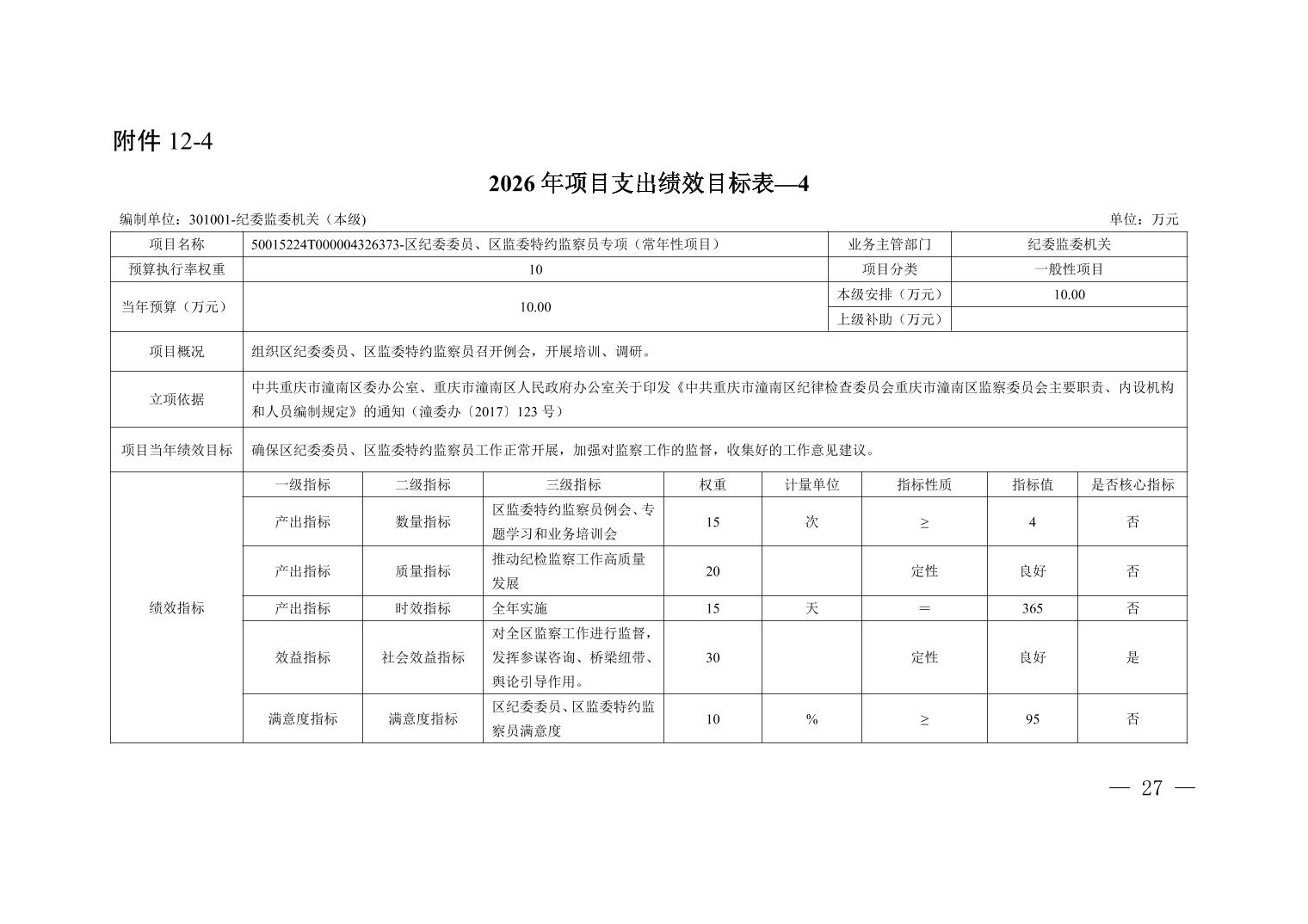 中共重庆市潼南区纪律检查委员会2026年部门预算公开