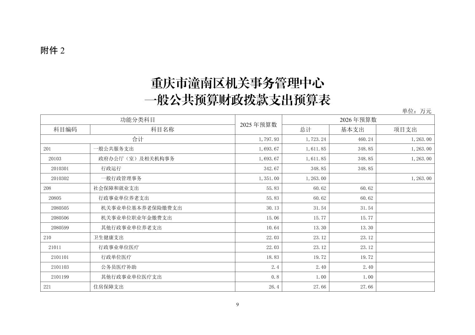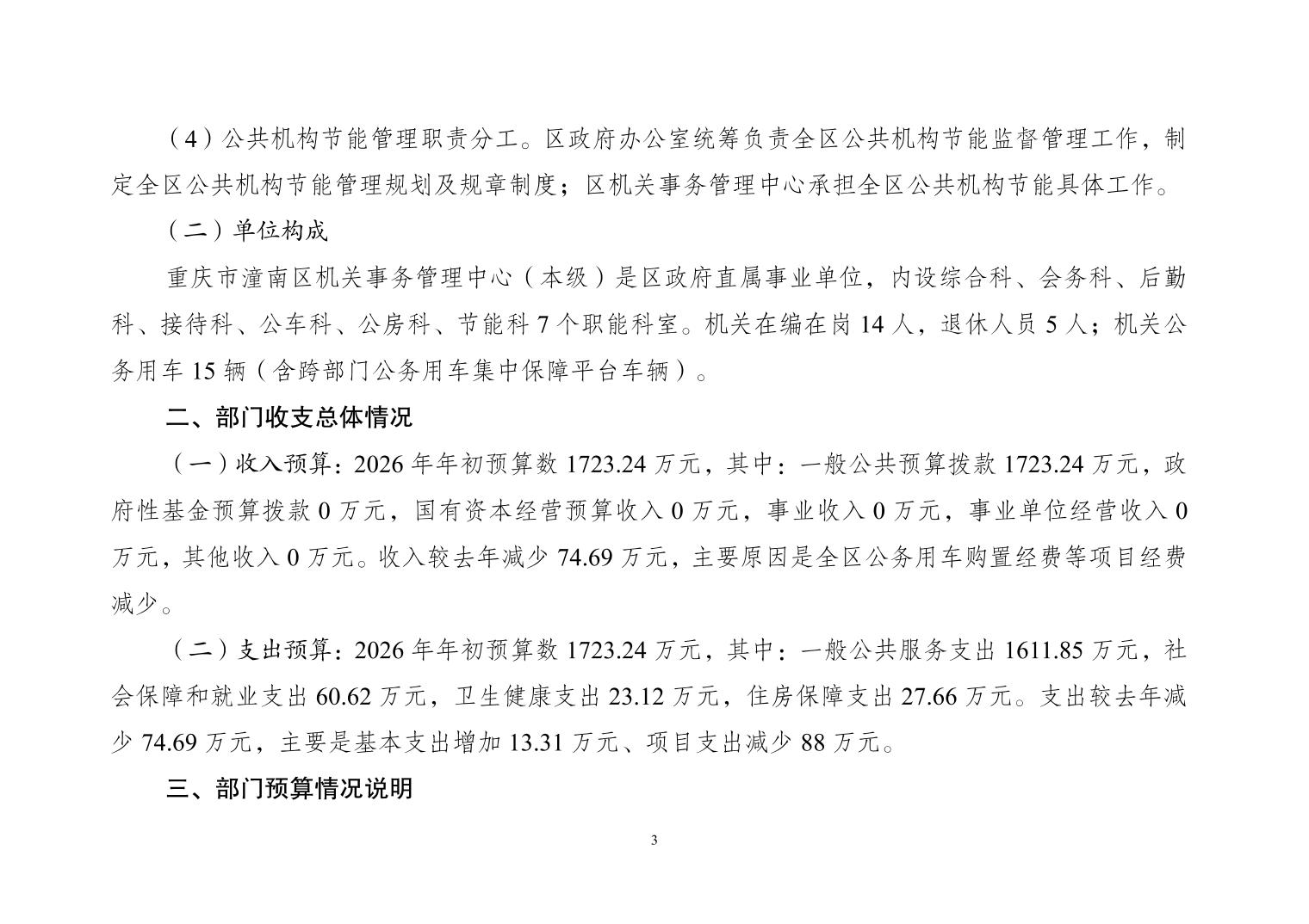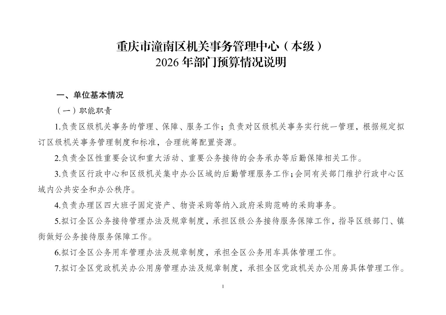 重庆市潼南区机关事务管理中心(本级) 2026年部门预算公开