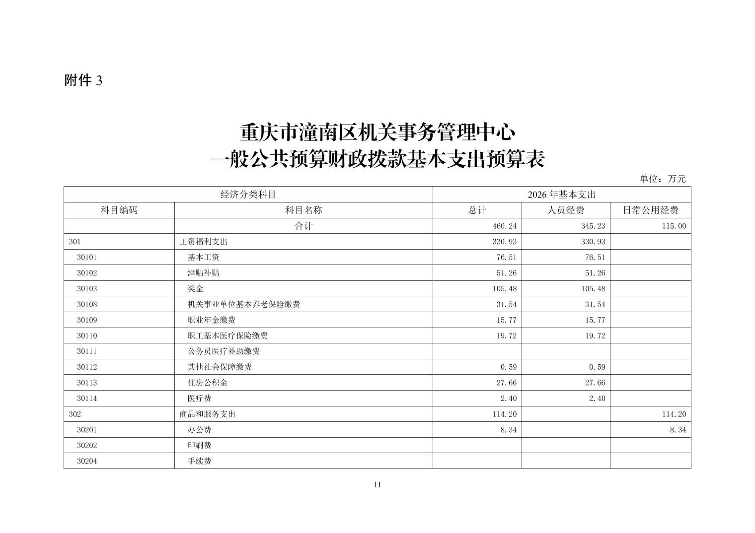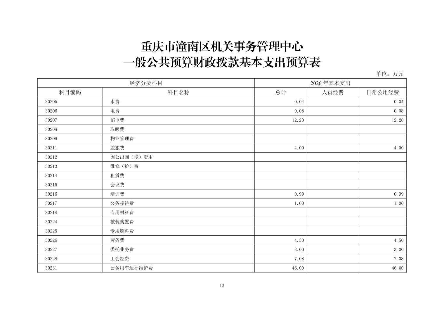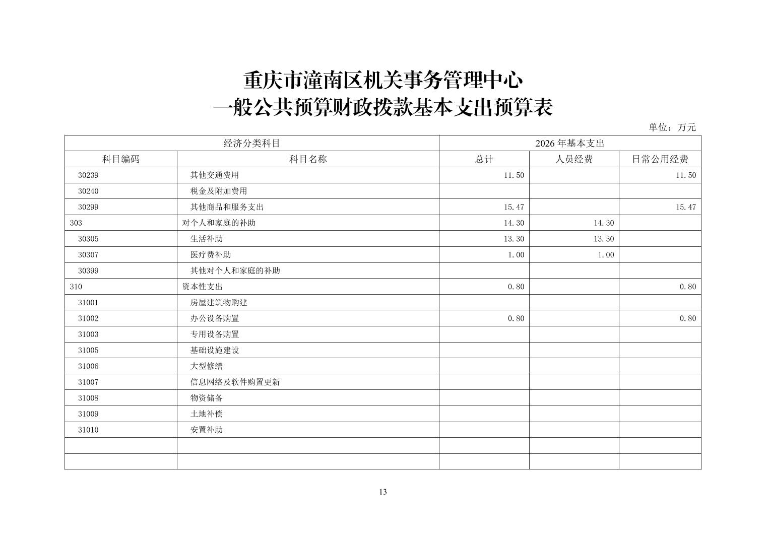 重庆市潼南区机关事务管理中心(本级) 2026年部门预算公开