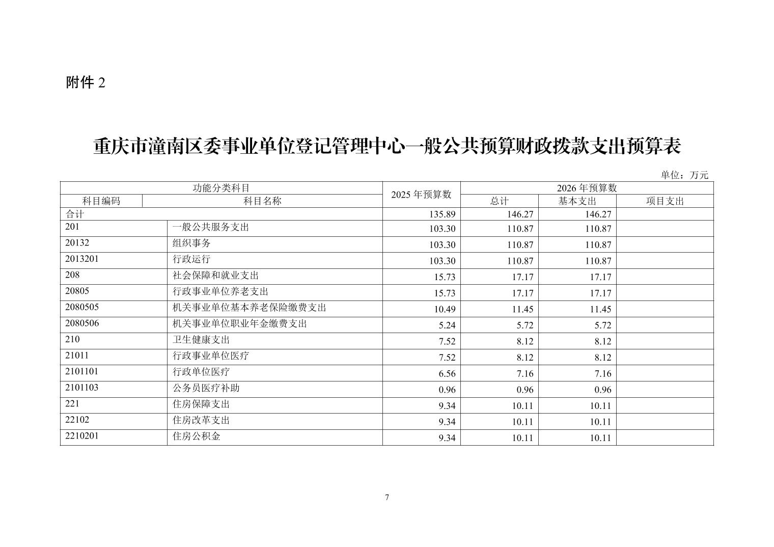 重庆市潼南区事业单位登记管理中心2026年度预算公开