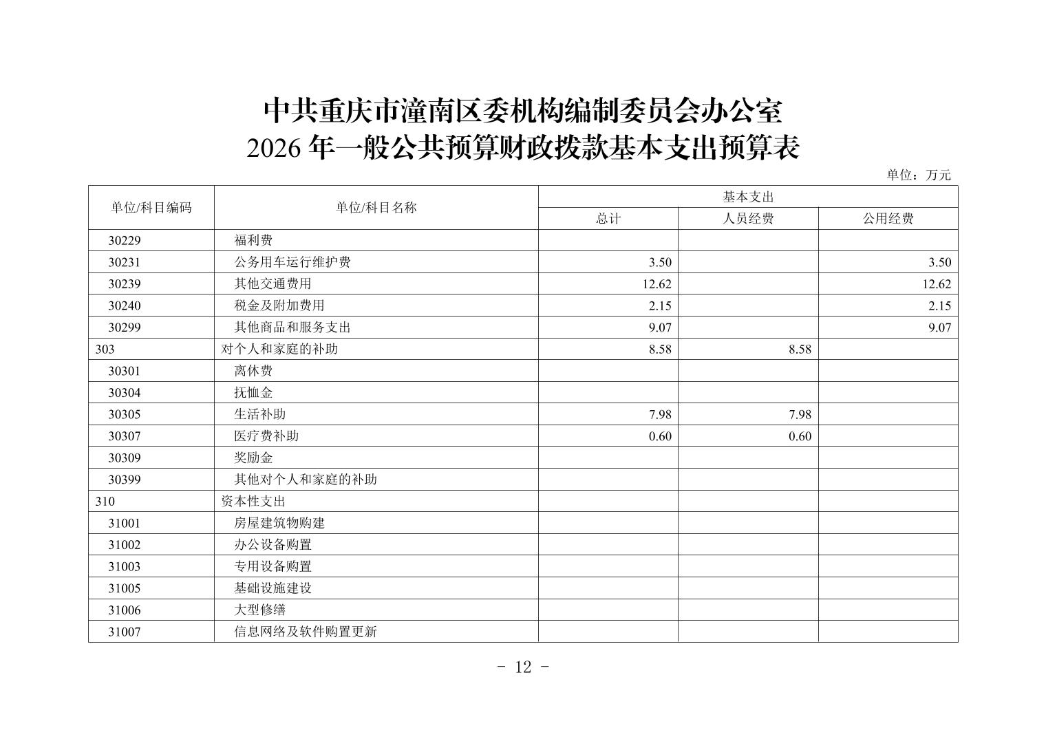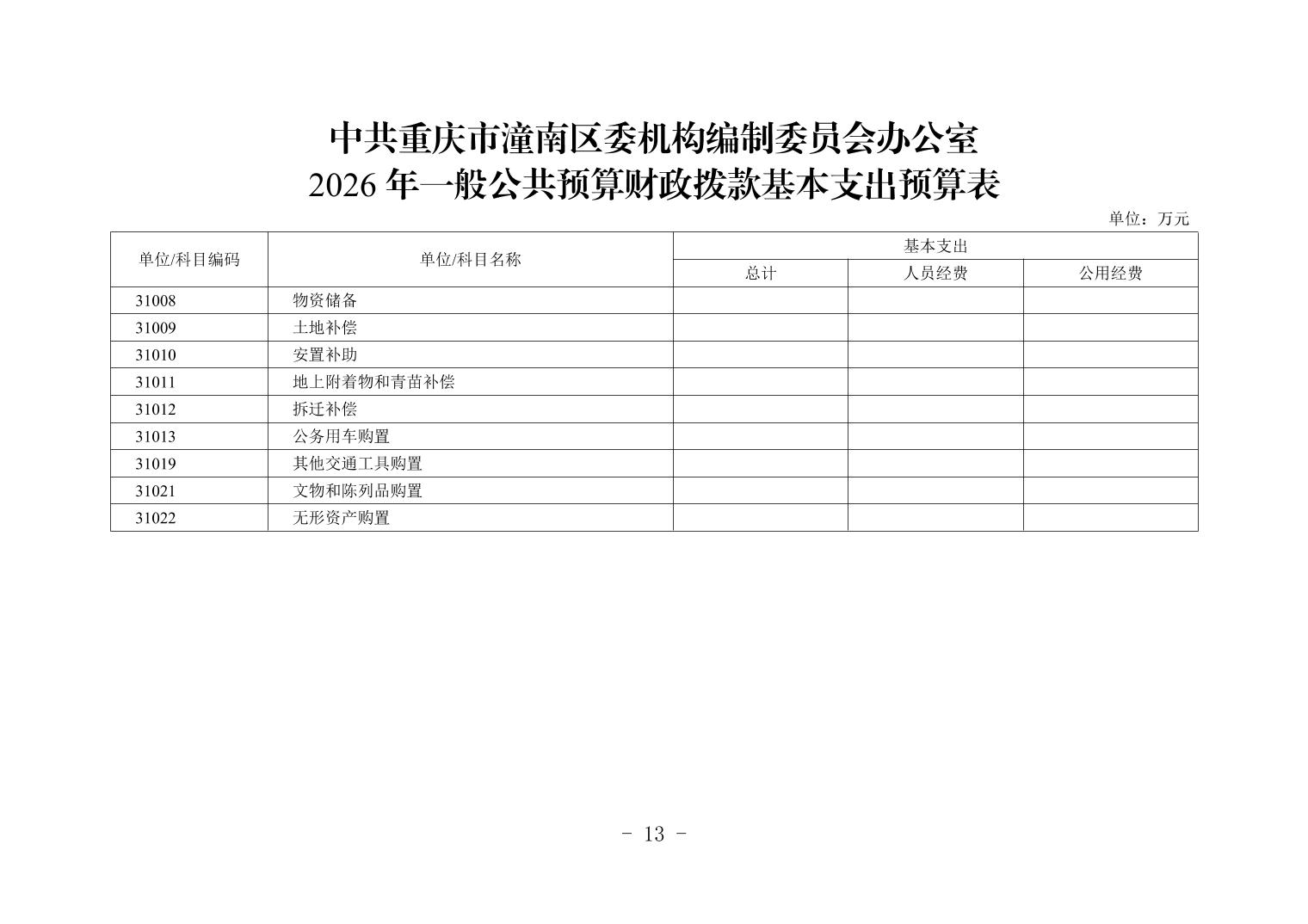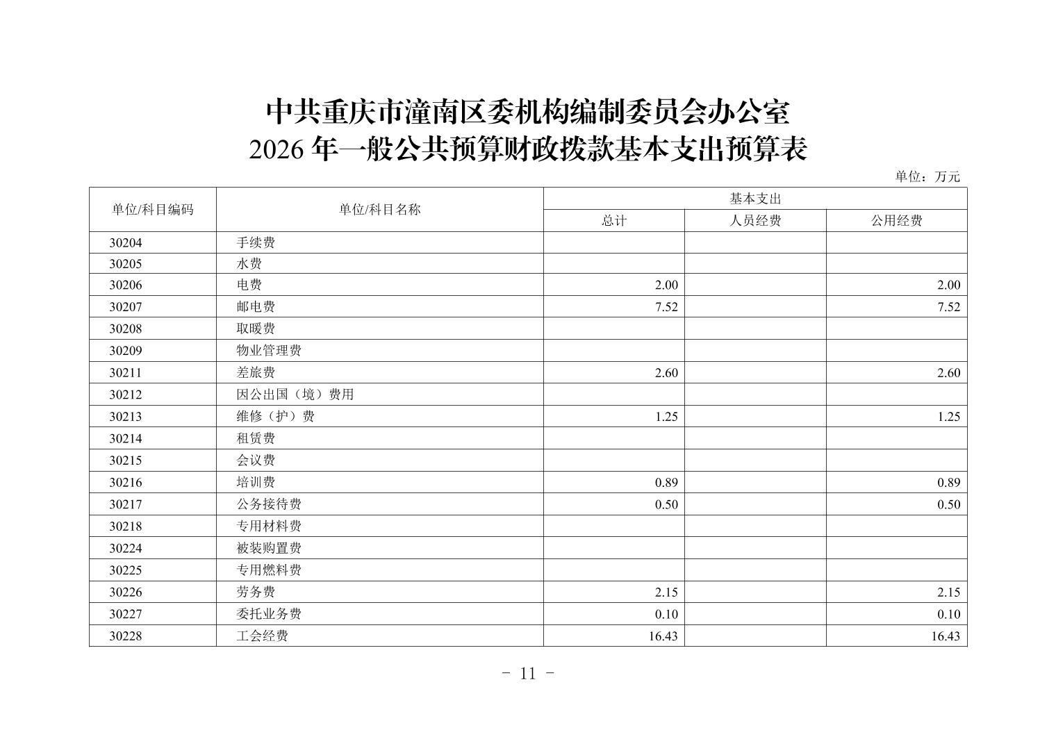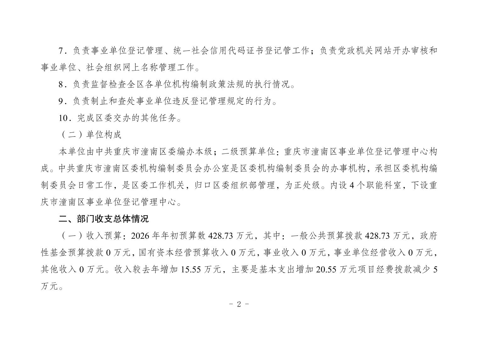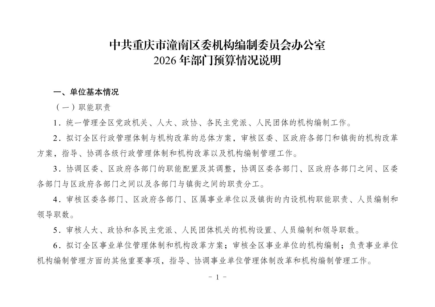 中共重庆市潼南区委机构编制委员会办公室2026年部门预算公开