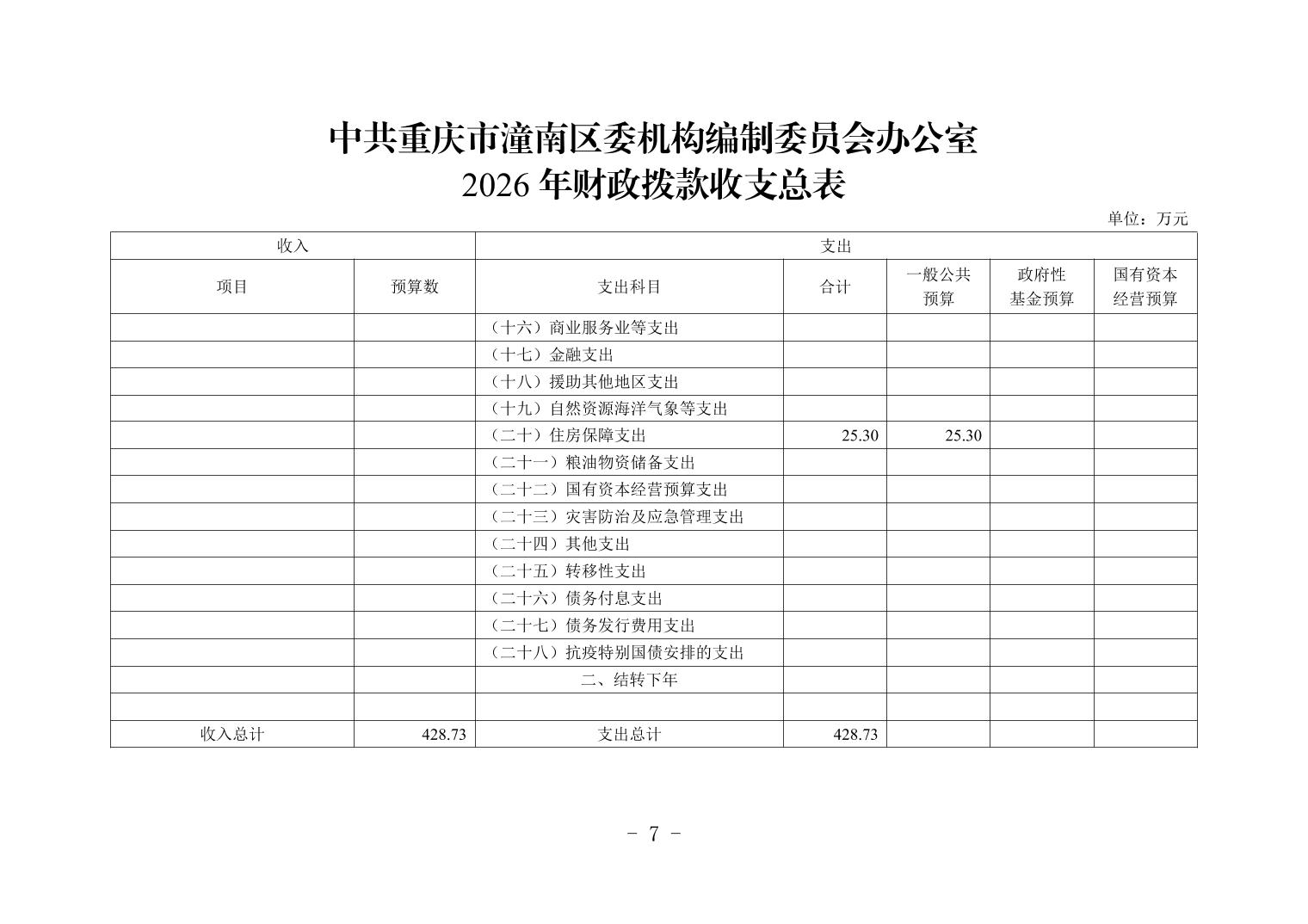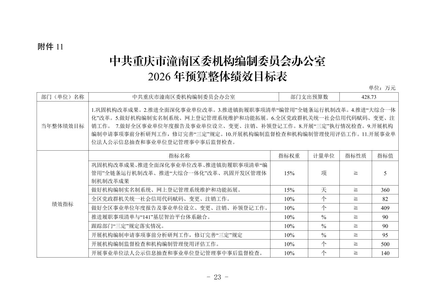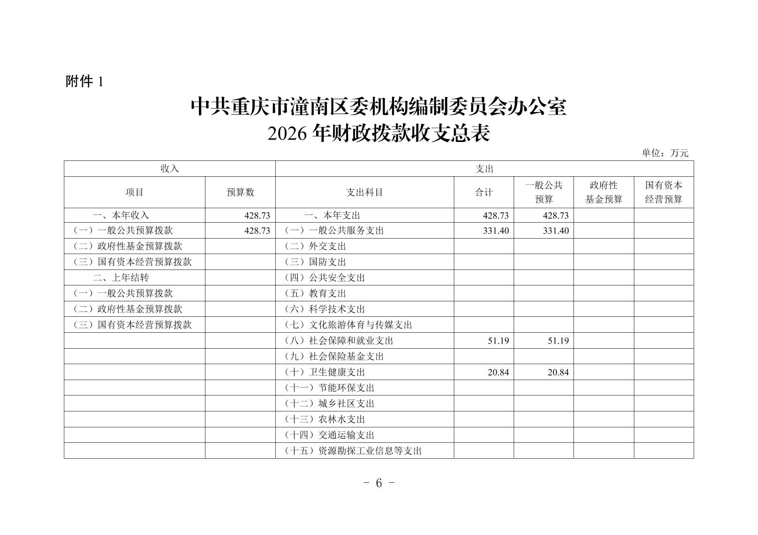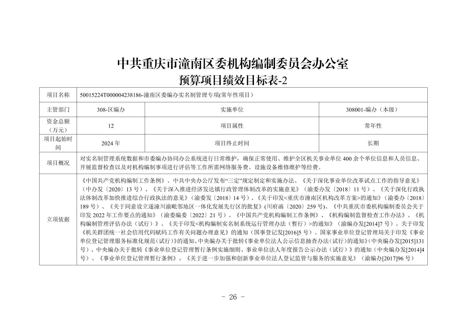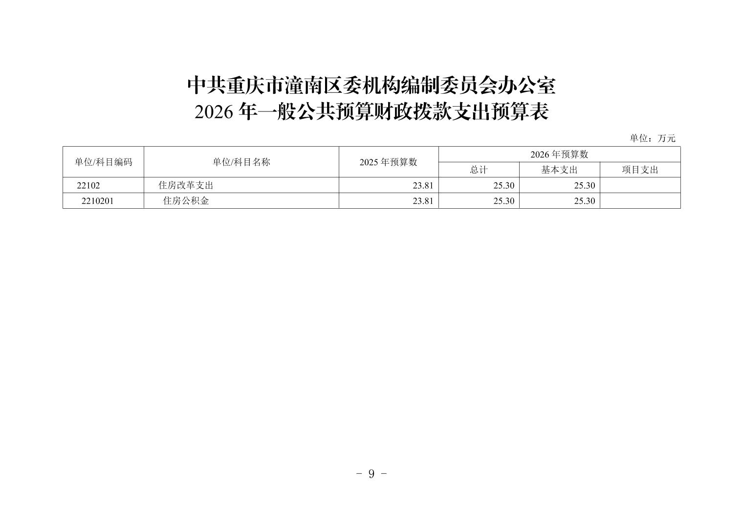 中共重庆市潼南区委机构编制委员会办公室2026年部门预算公开