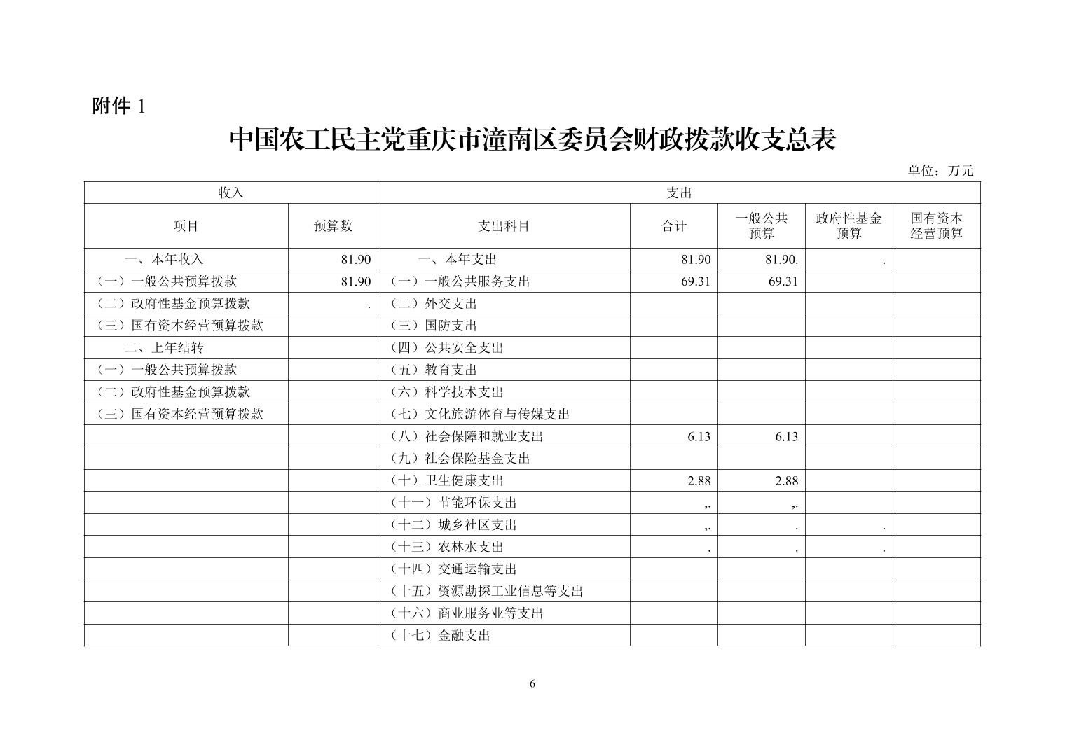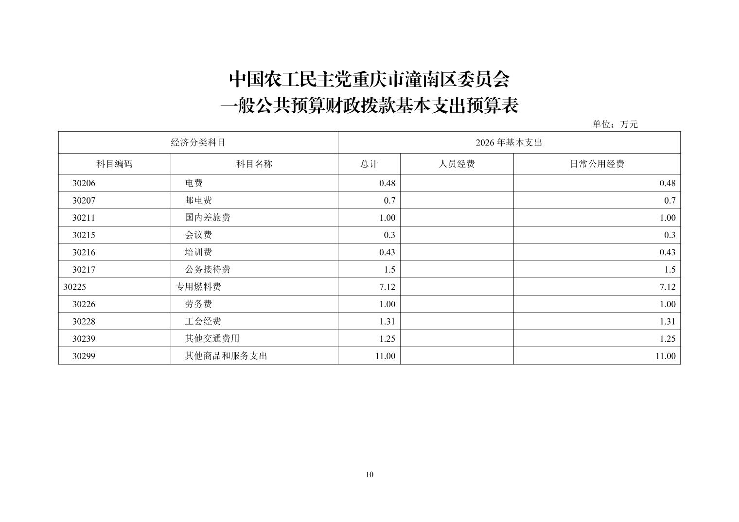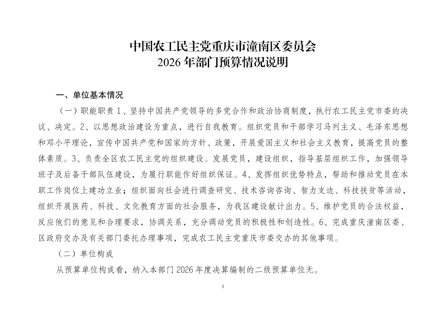 中国农工民主党重庆市潼南区委员会2026年度部门预算公开