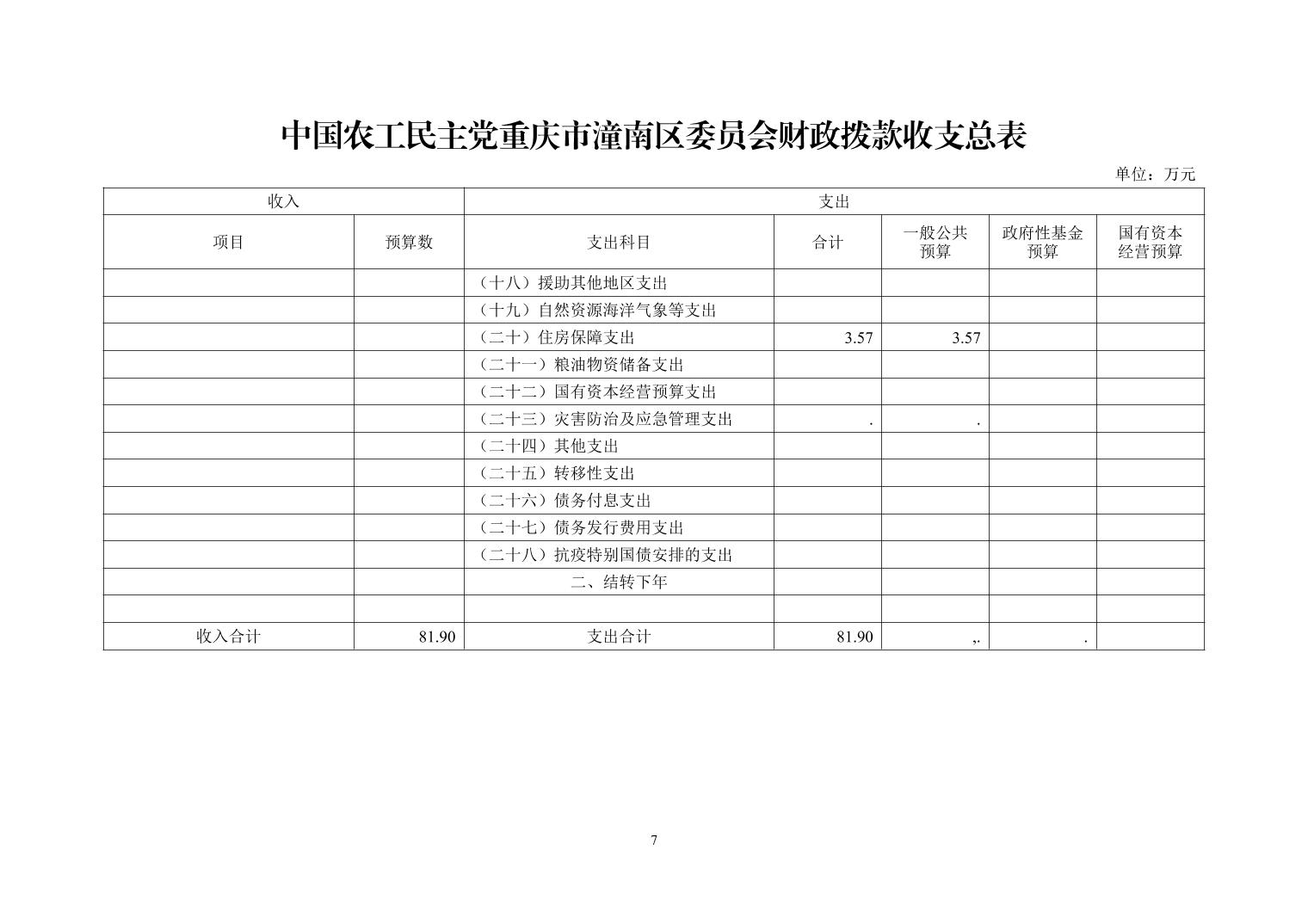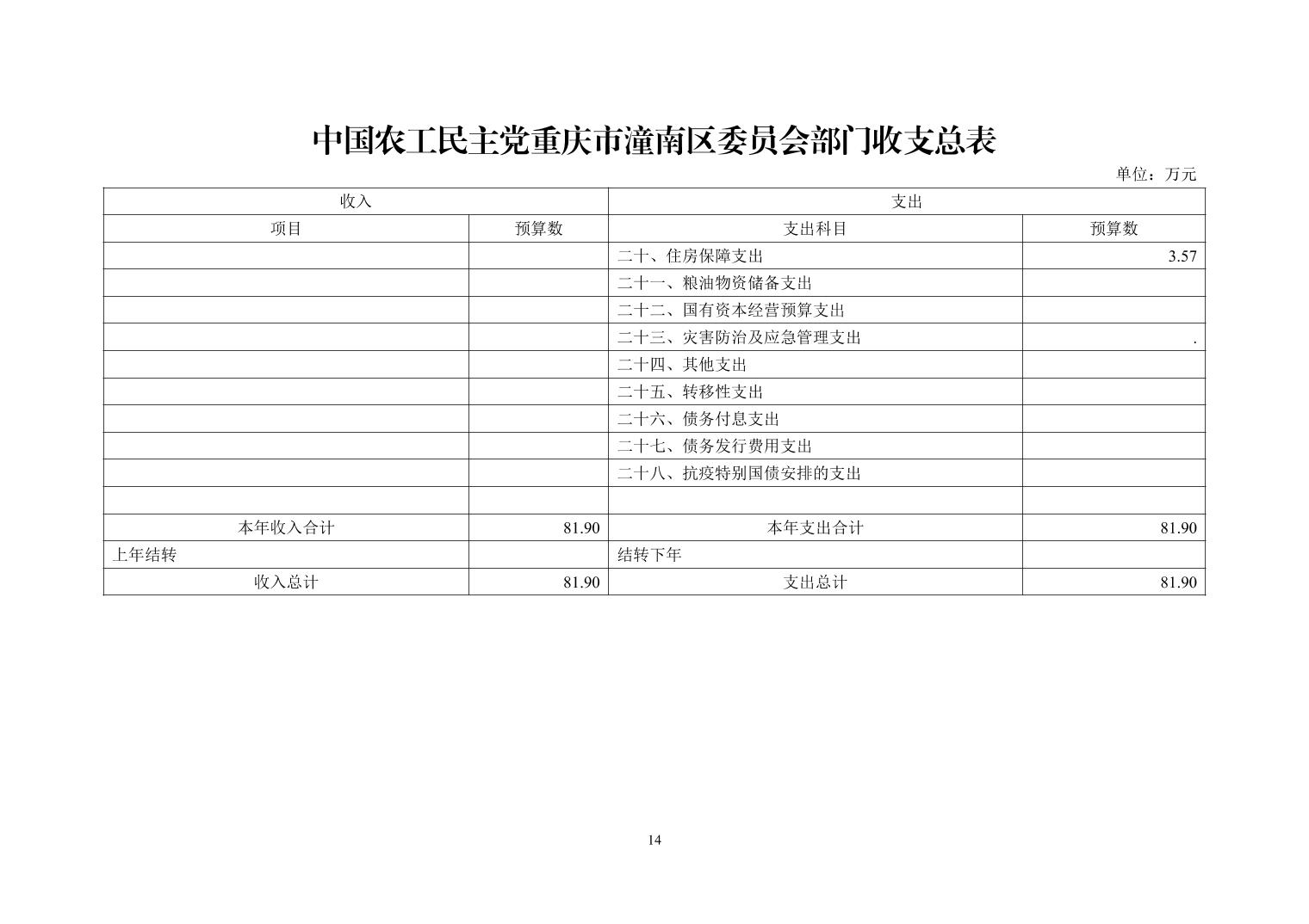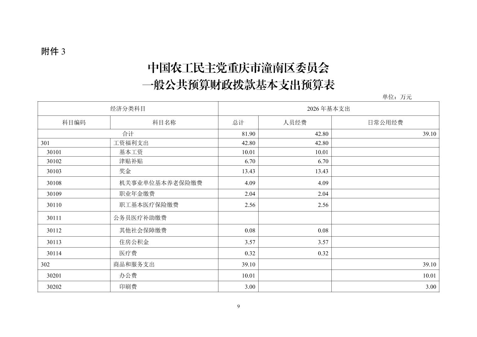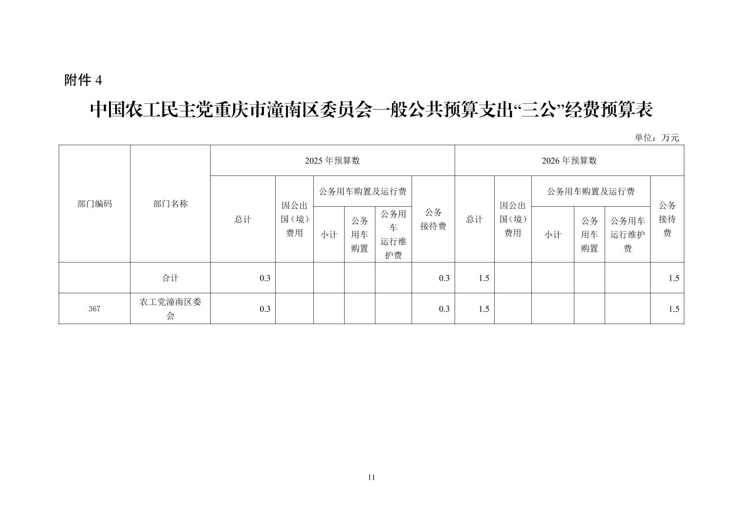 中国农工民主党重庆市潼南区委员会2026年度部门预算公开