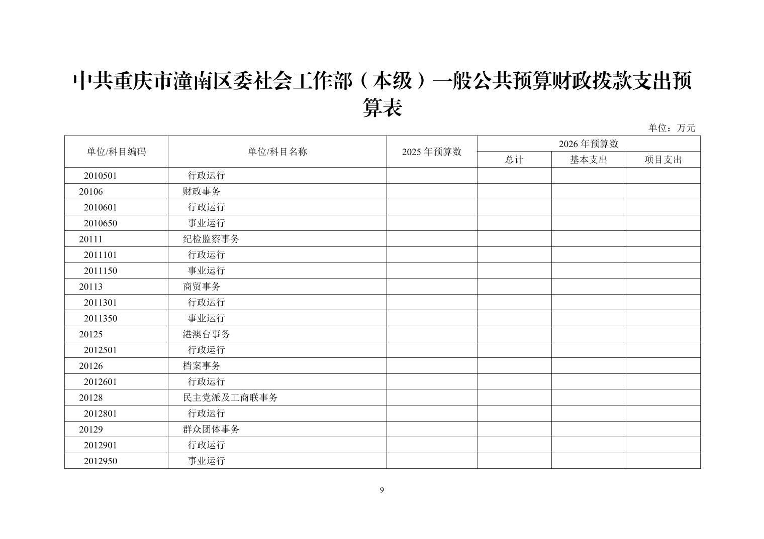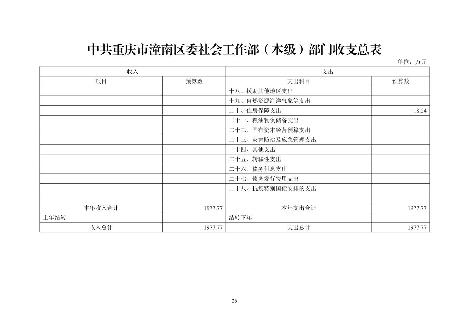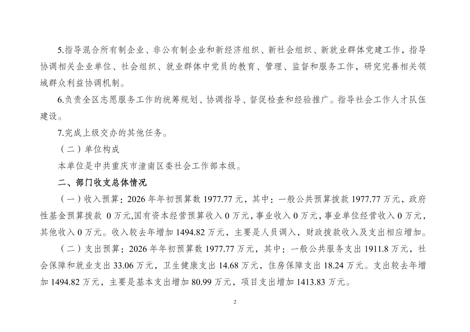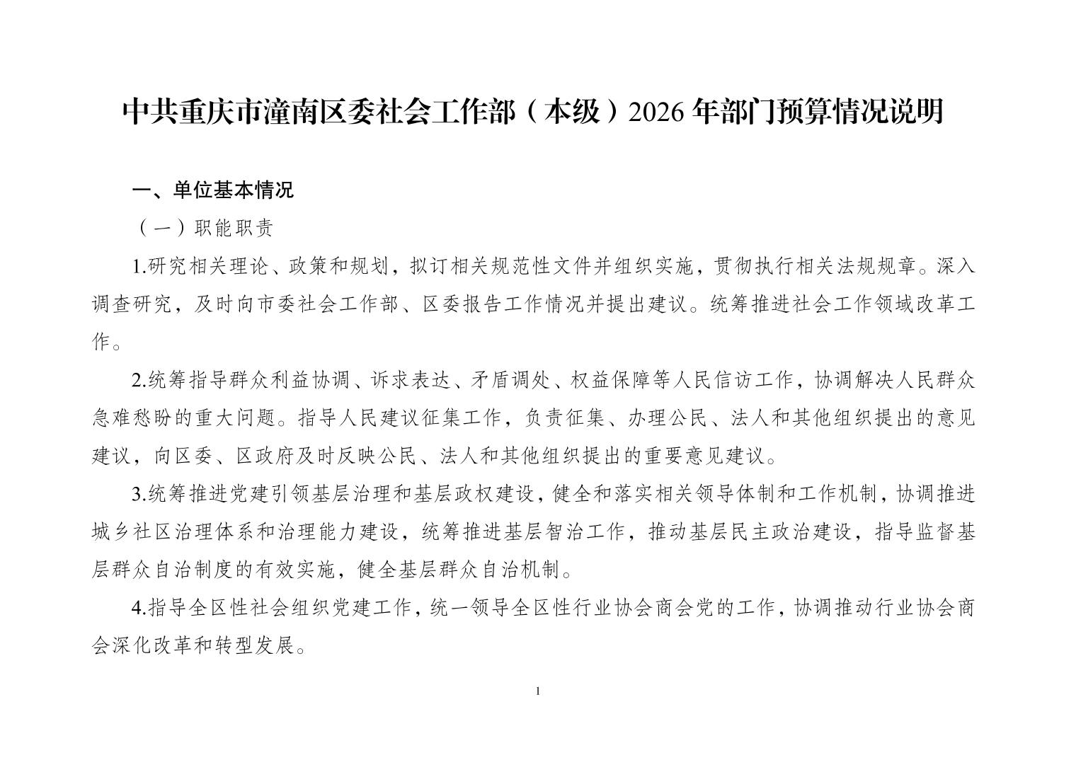中共重庆市潼南区委社会工作部(本级)2026年部门预算公开