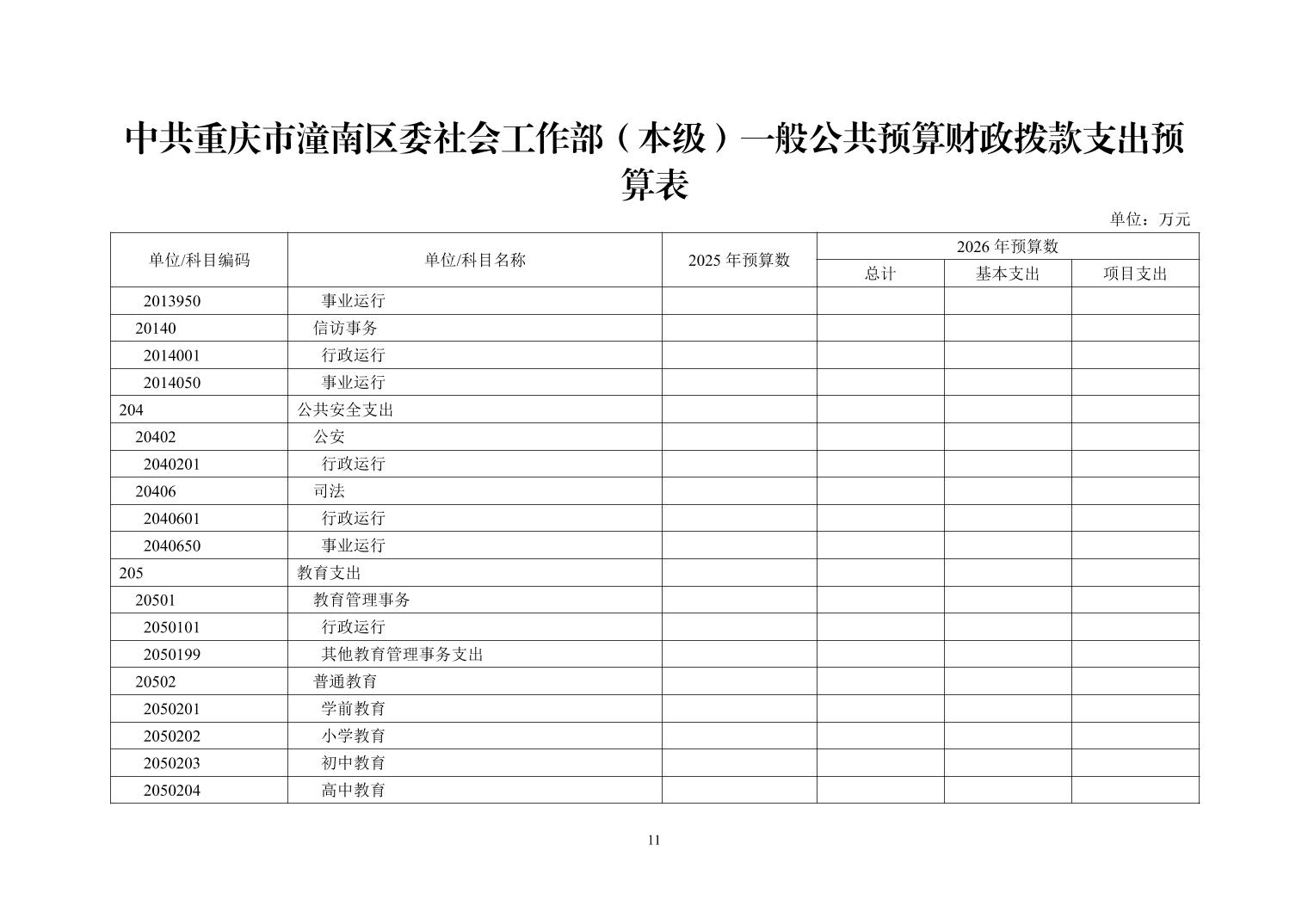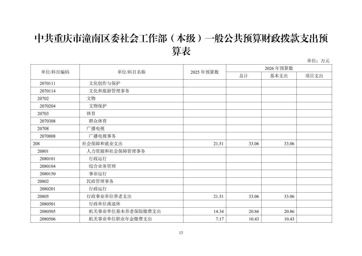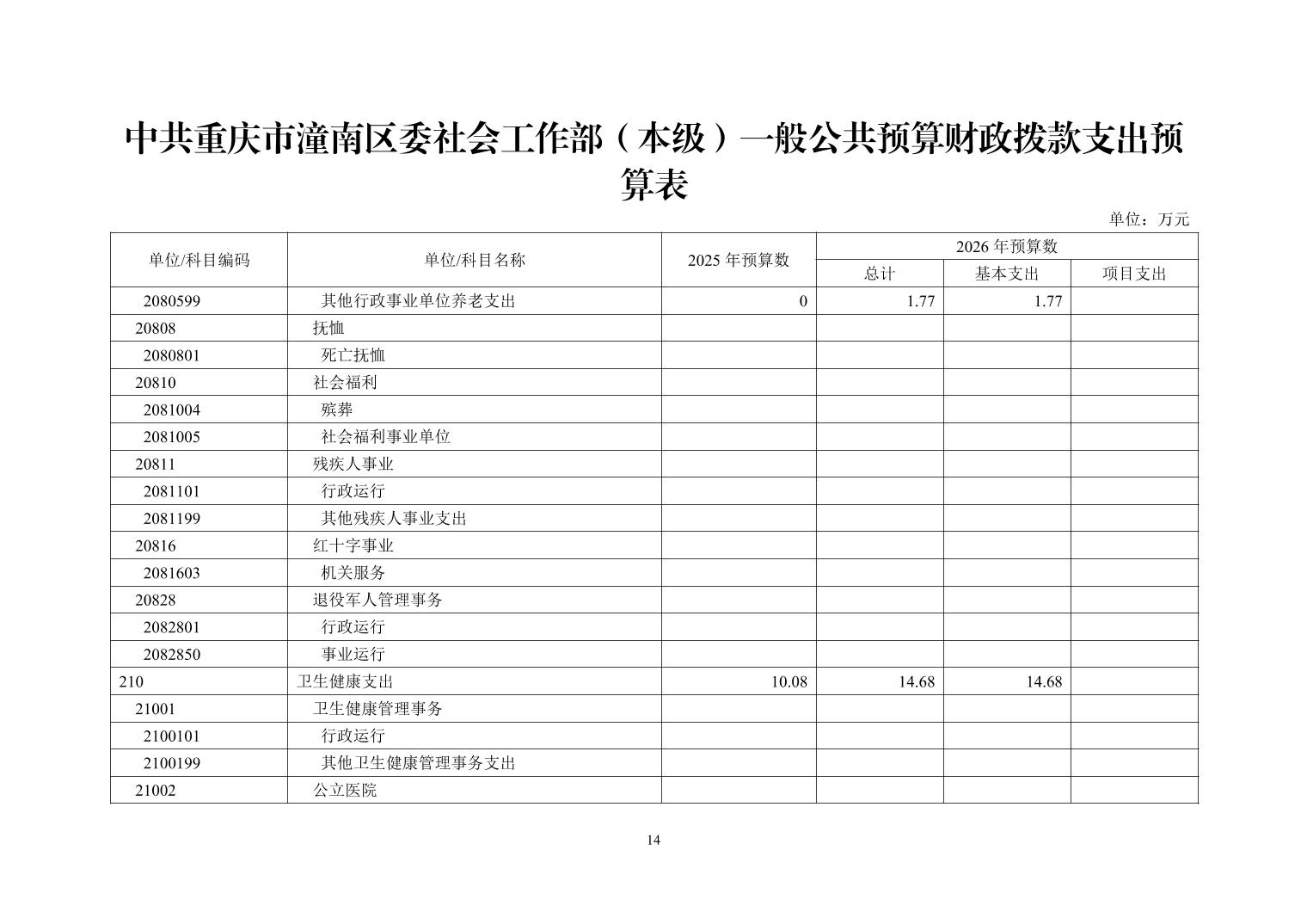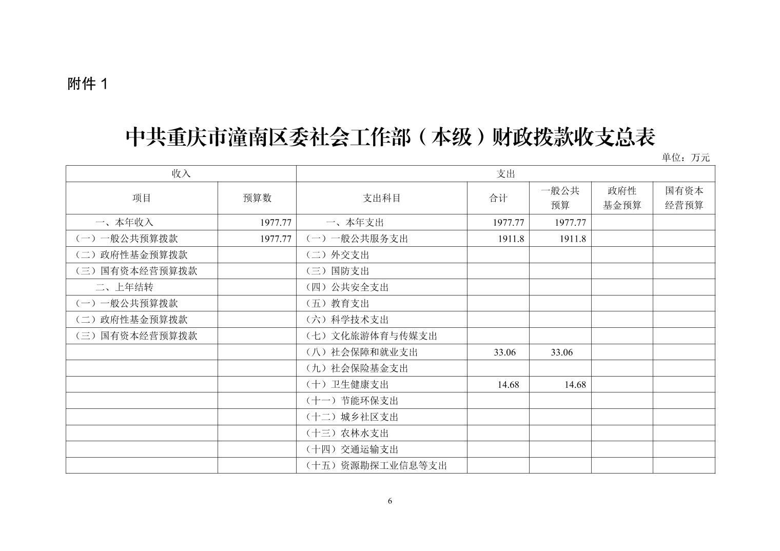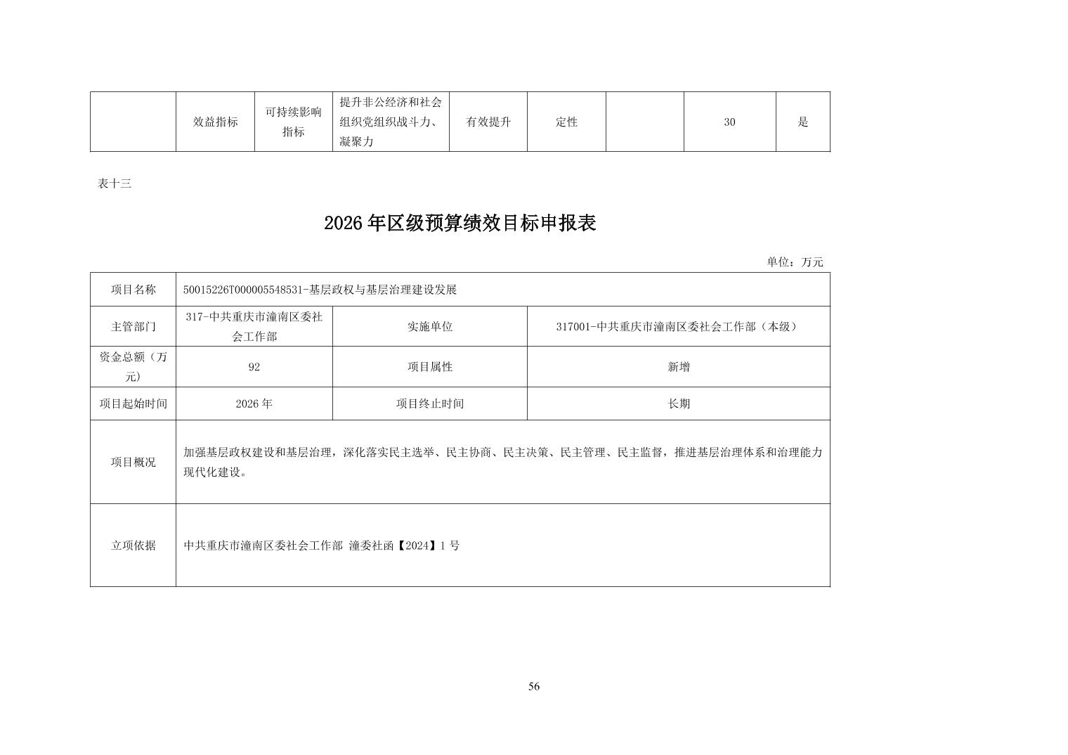 中共重庆市潼南区委社会工作部(本级)2026年部门预算公开