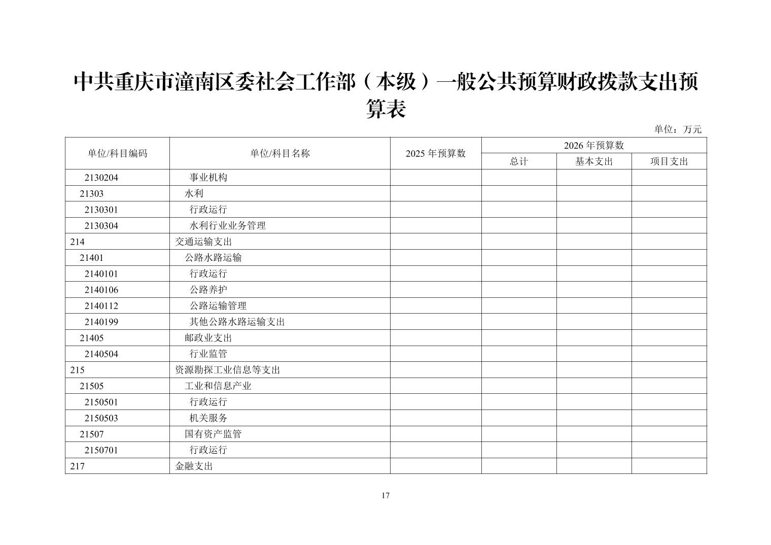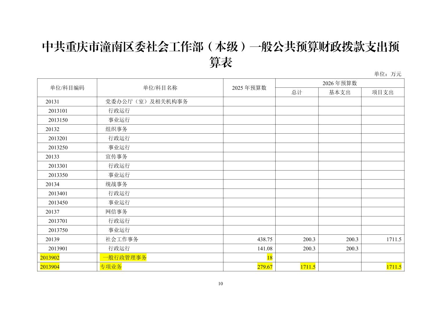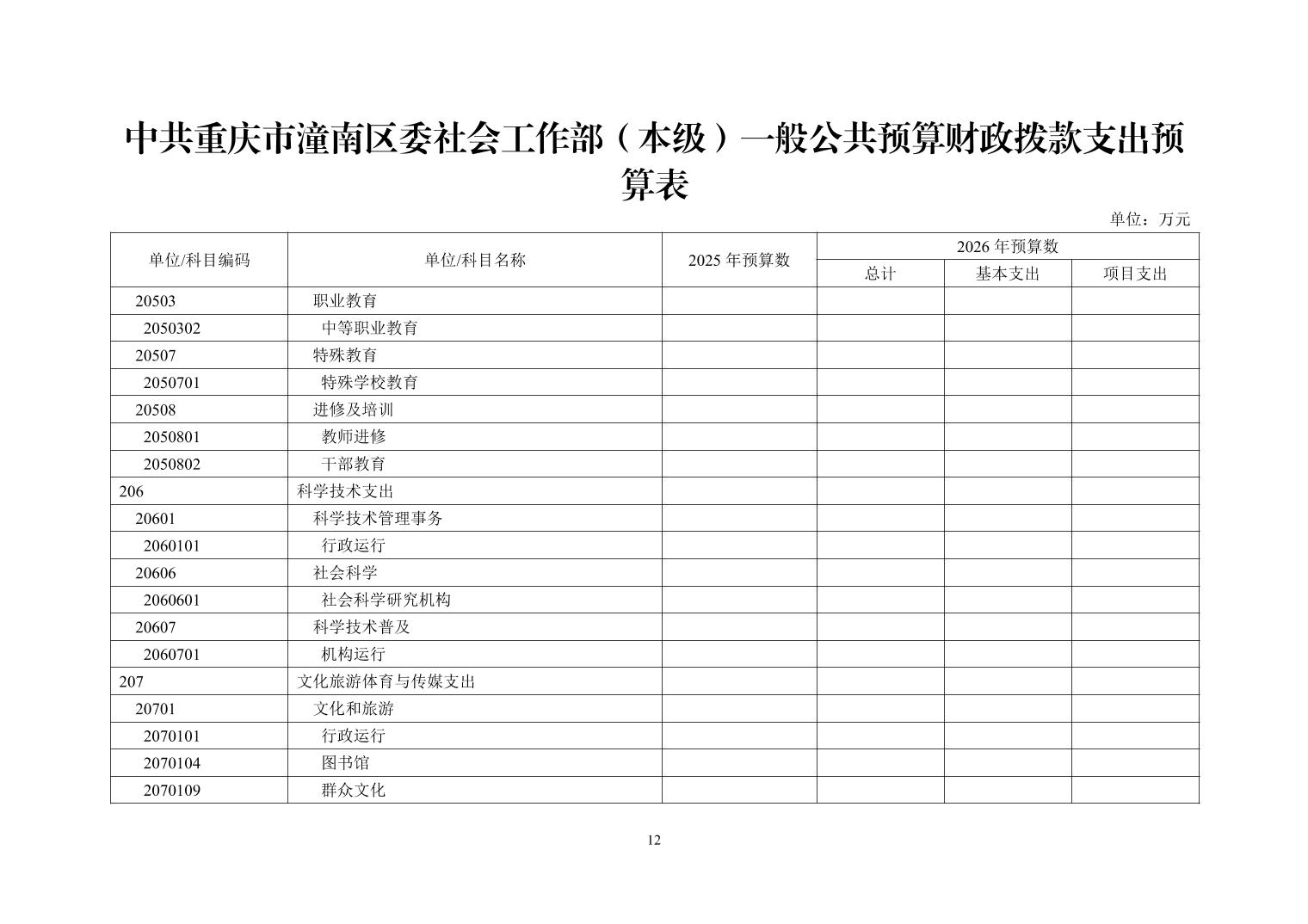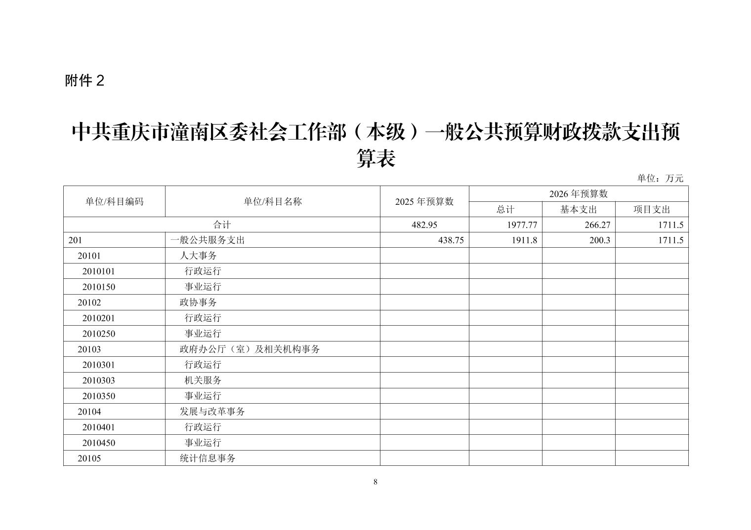 中共重庆市潼南区委社会工作部(本级)2026年部门预算公开